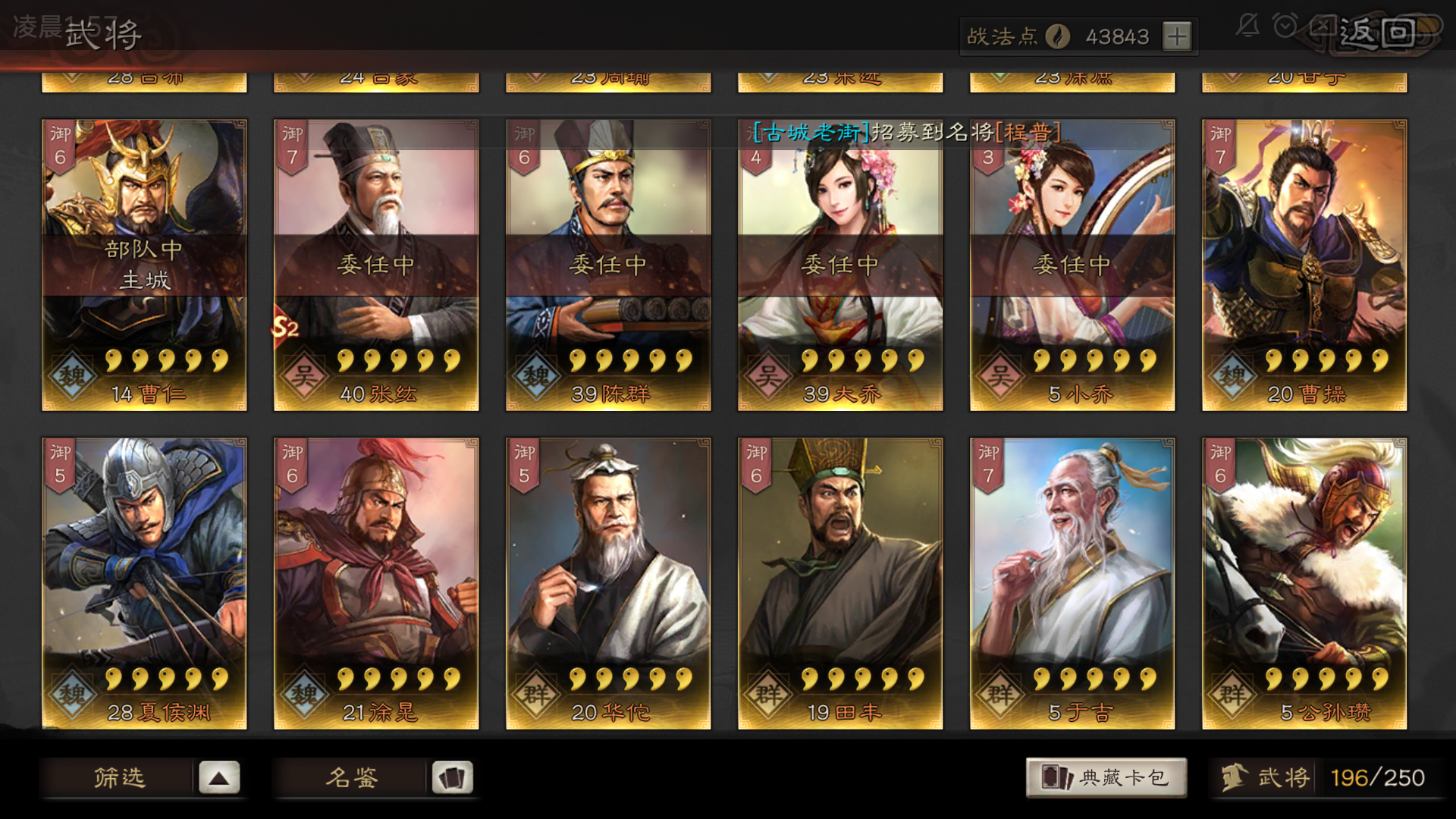 我一赛季,零氪(学生氪不起),最理想的状态是徐庶(白眉+于禁的传承),田丰(坐守孤城+精华\御敌屏障),程昱(还没拿到),感觉理论上限挺高的,大佬们帮我看看[嗒啦啦2_抱大腿]
