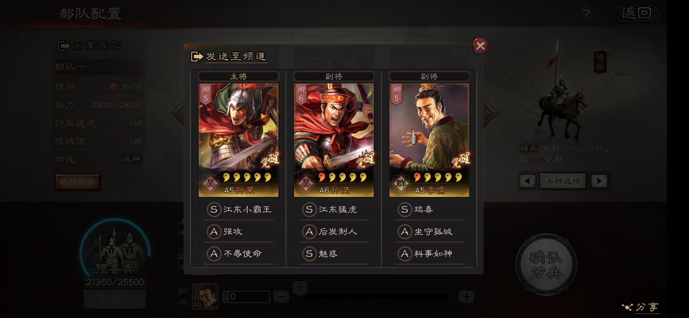 我有一队主力,孙策,孙坚,李儒我想再配一队主力,橙将有程煜,吕蒙,郭嘉,许褚,田丰,邓艾麻烦大佬帮忙配一下武将和战法