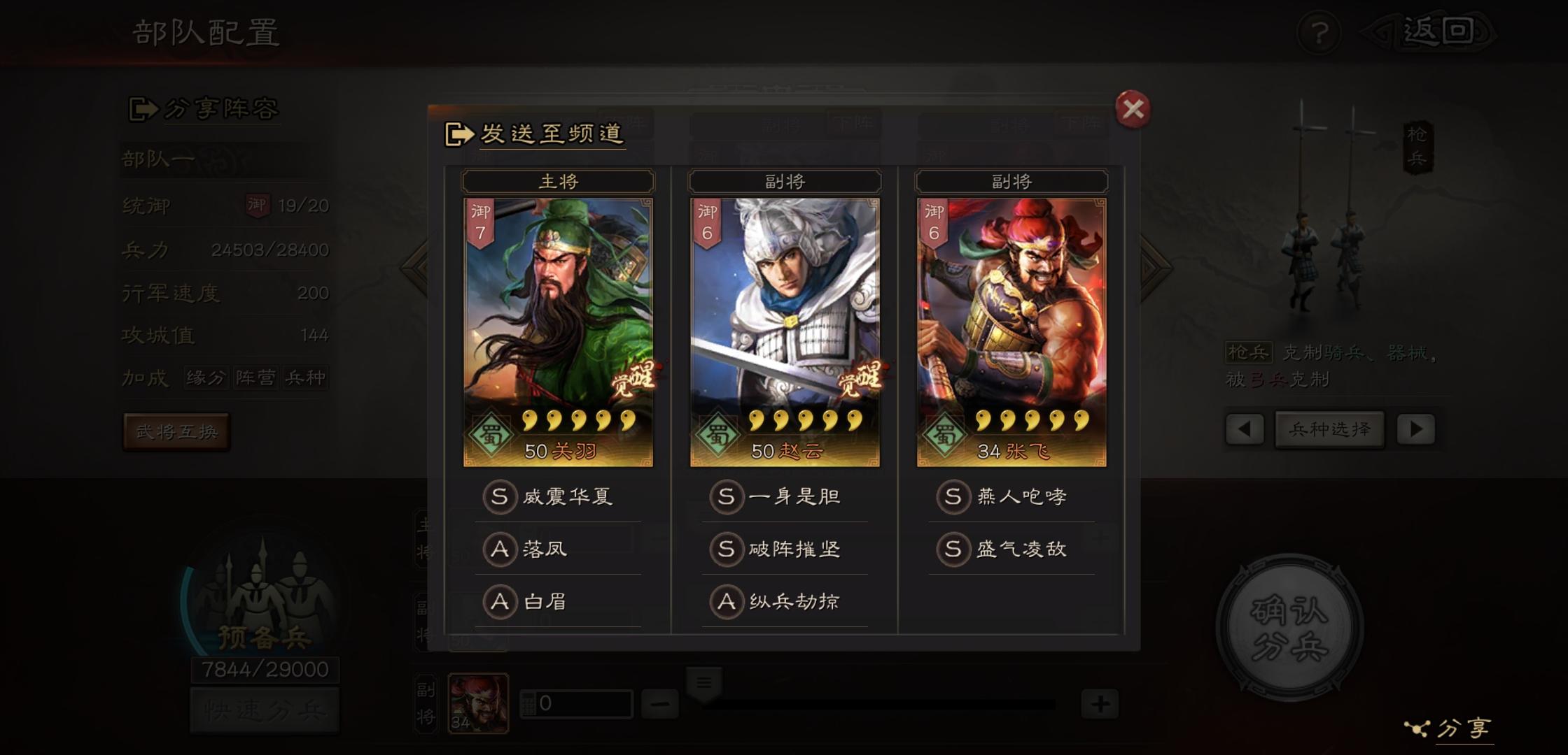 目前s3,组了个四队,目前是这样安排的,能不能帮看看,思路是把张角发动率堆到80,争取前三到四回合发动2次,之后随缘,孙尚香稳定输出,带个鲁莽加点回复