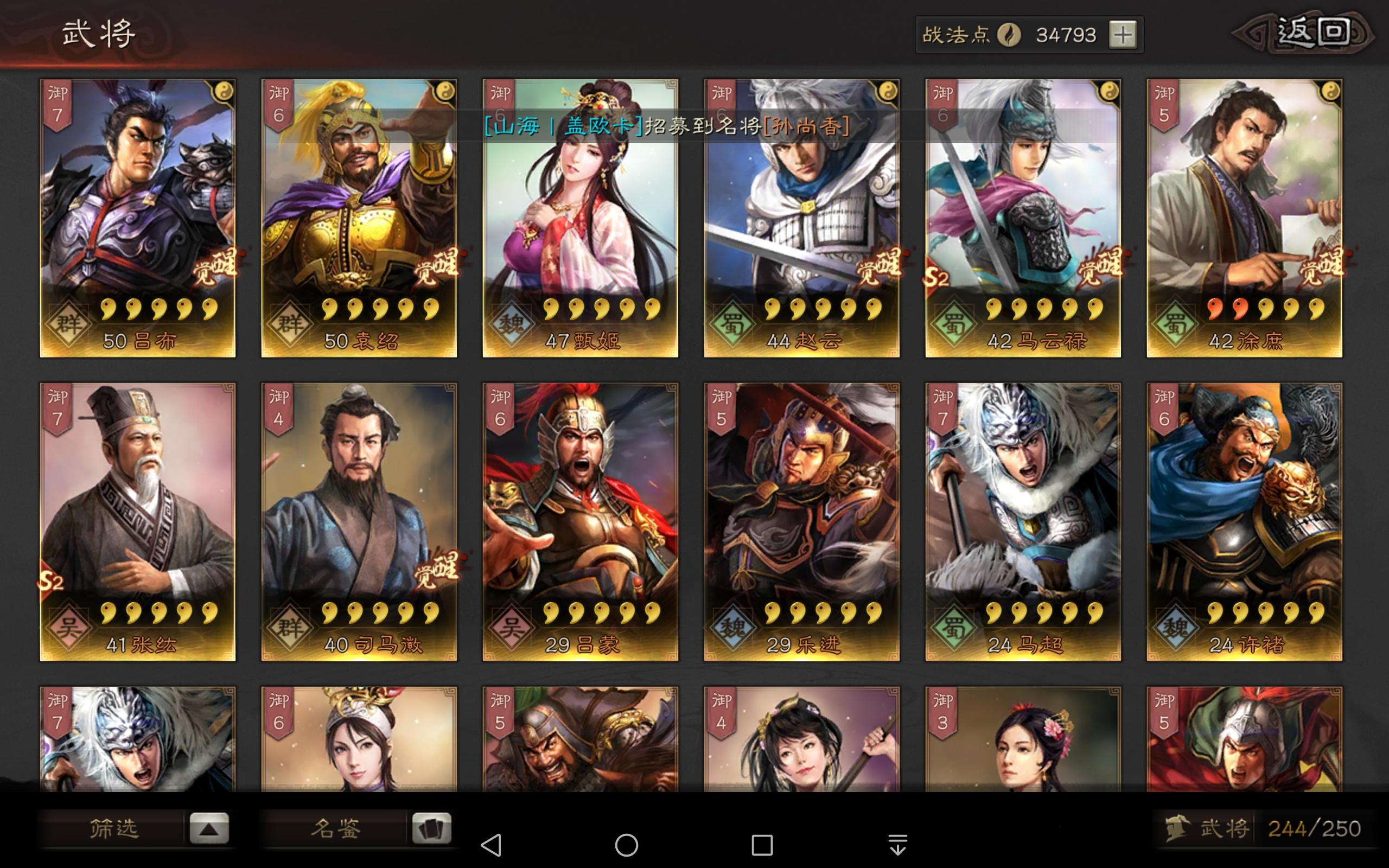 吕布,庞德,田丰,袁绍,程普,孙坚,黄盖以及一大堆紫将……