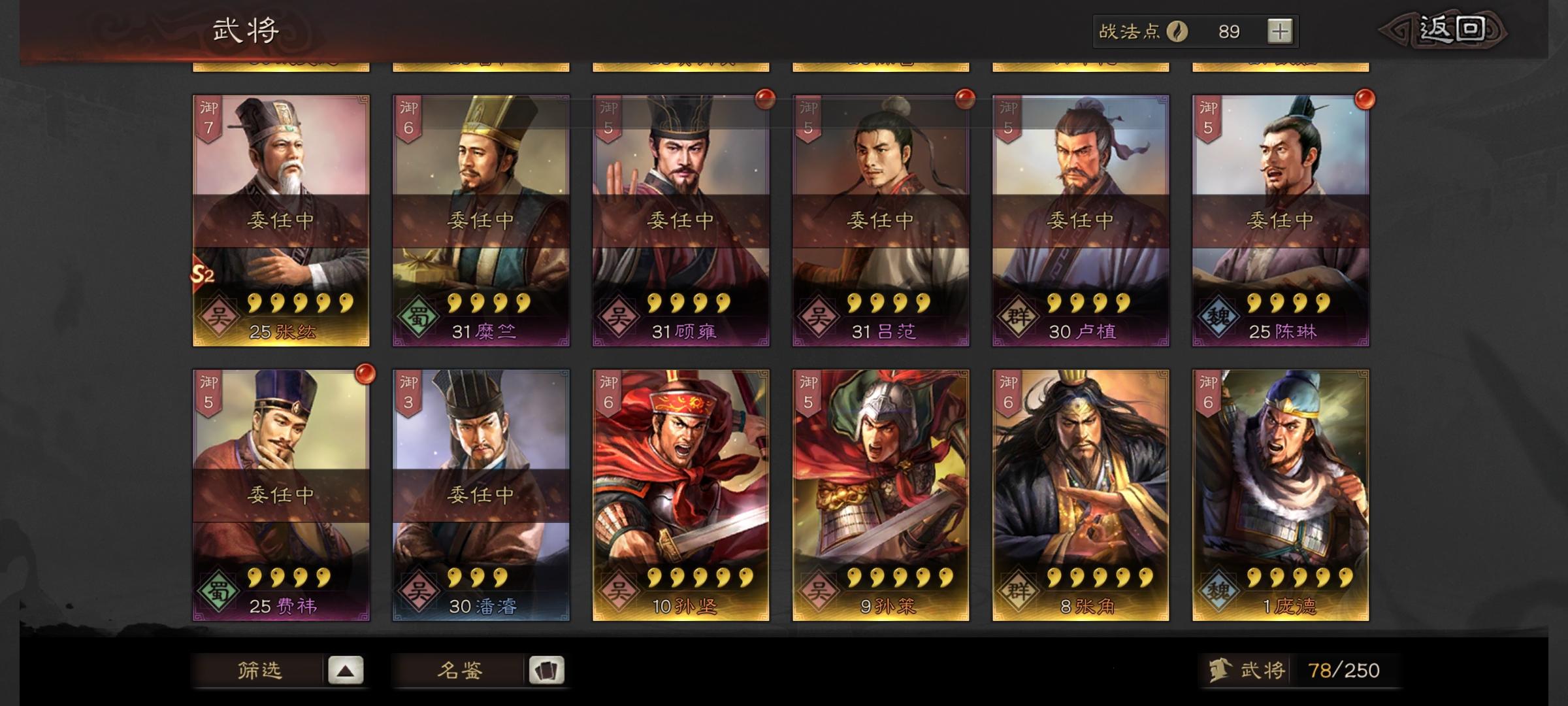 小氪玩家,基本就这点武将,下面还有钟会袁绍小乔公孙瓒,除盾外双兵种齐全,s战法有盛气暂避魅惑破阵摧坚,s2还可以抽20次霸业卡包,求大佬们给配一下阵容