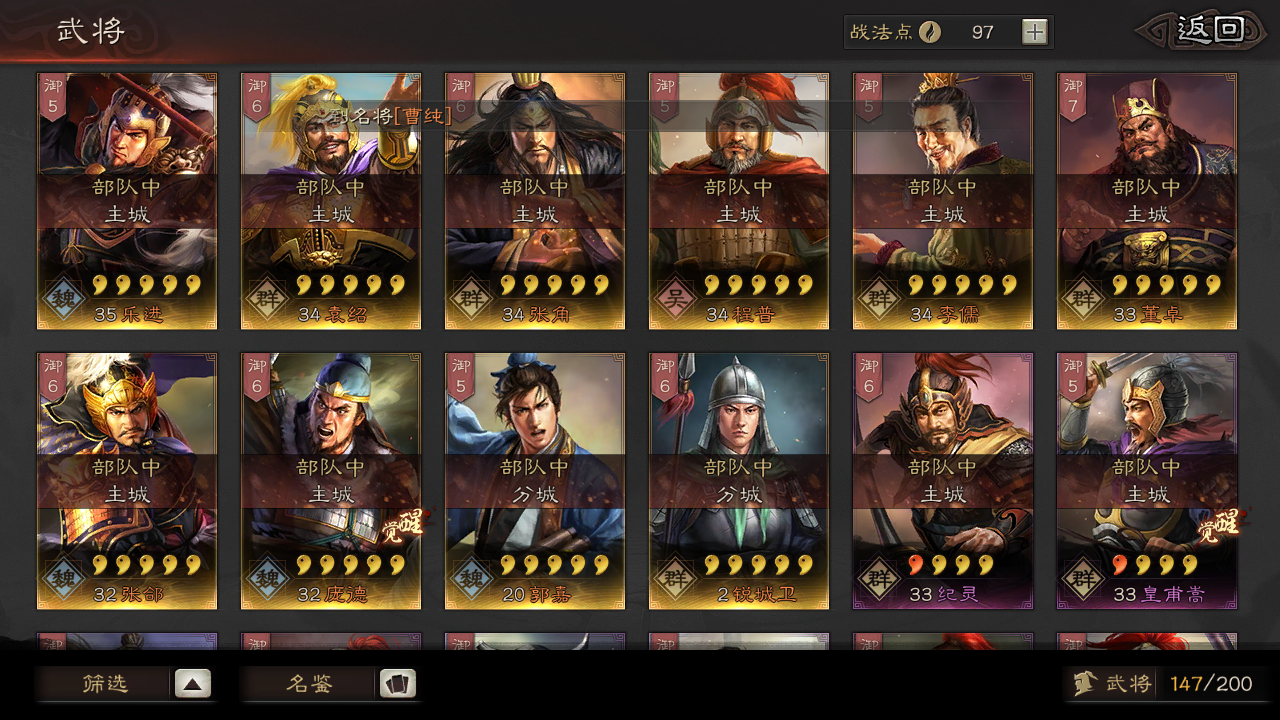 只有这么多橙将,紫将有朱雋