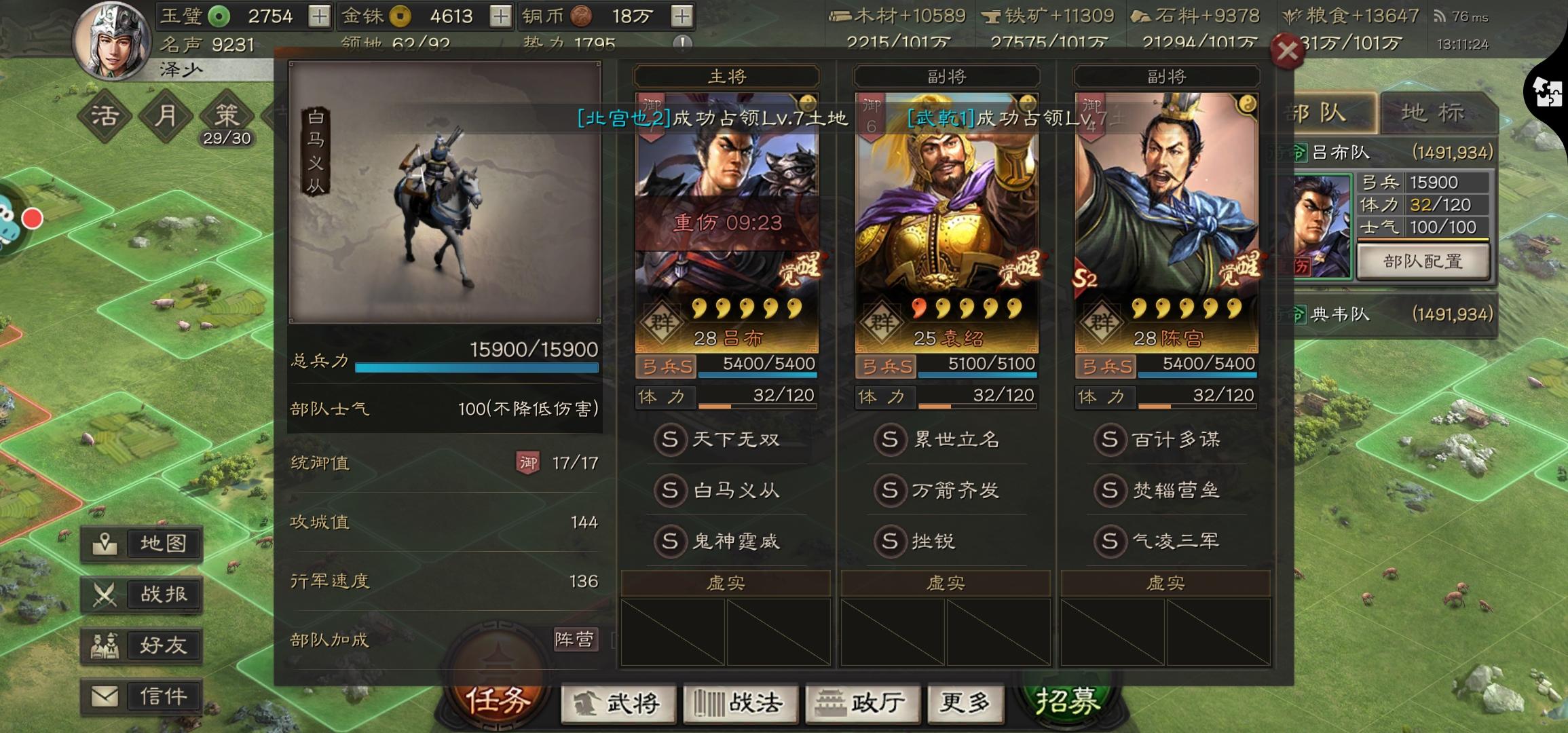 萌新第二天,有点上头了😂有没有大佬看我的阵容给我整个开荒强队。四级领地13块了,明天就全换4级咯!就是这个兵死的也太多了,打个4级要死1000来个兵,死不起啊!😥