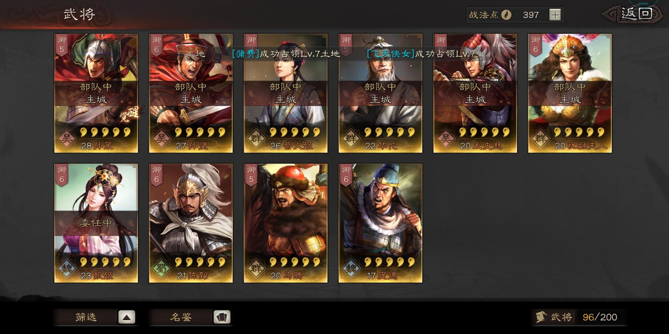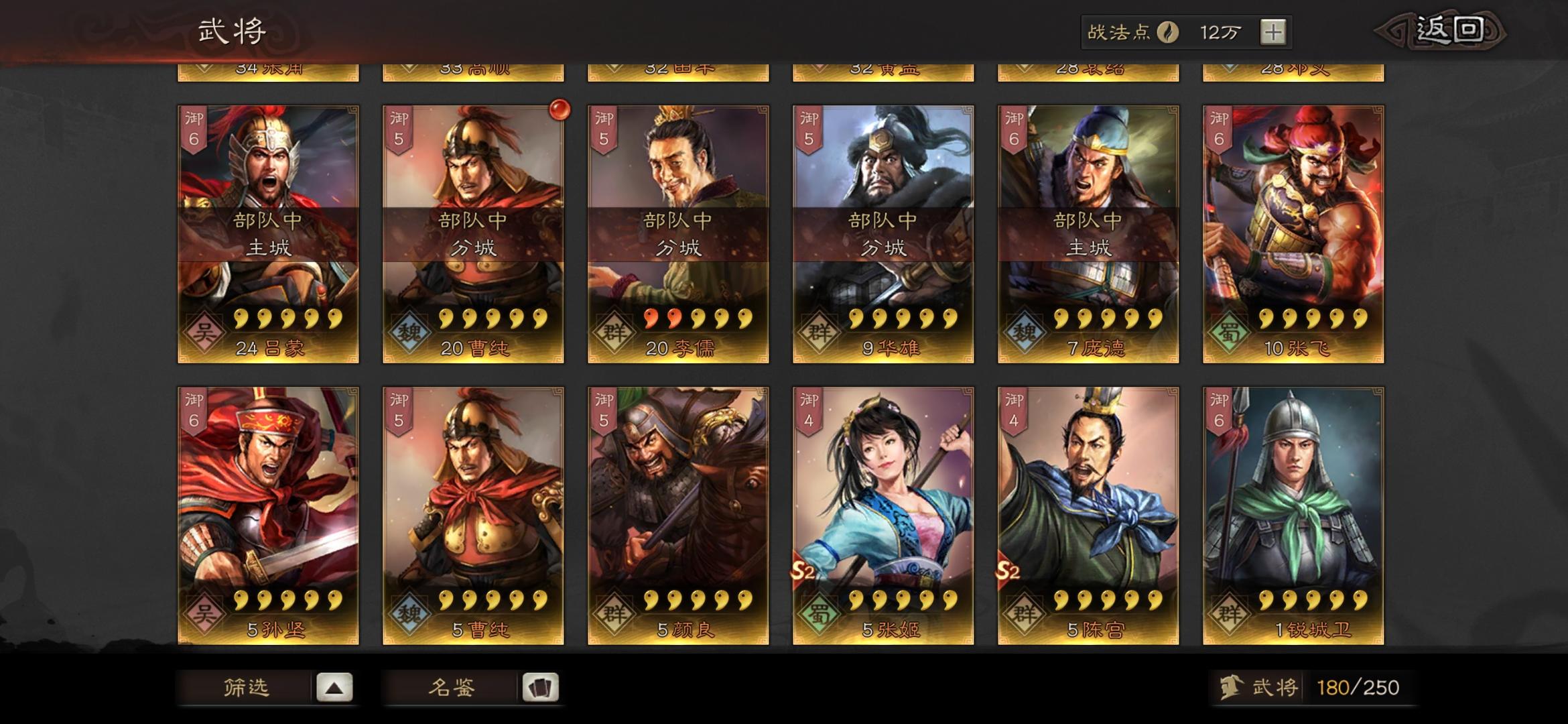 s级战法有盛气,陷阵,无当飞军,所向披靡,守而必固,暴戾无仁,锋矢阵