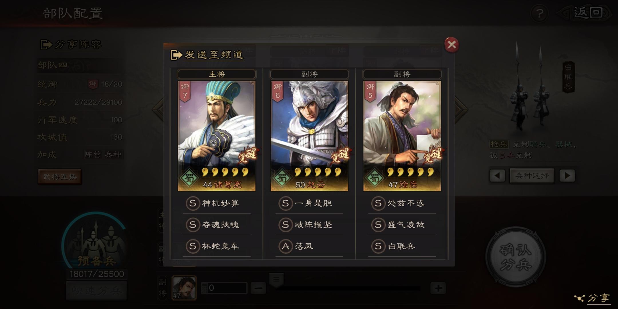 准备组一个诸葛关羽赵云蜀枪 和 刘备张飞黄忠蜀盾 但不知道战法怎么分配 大家来看看