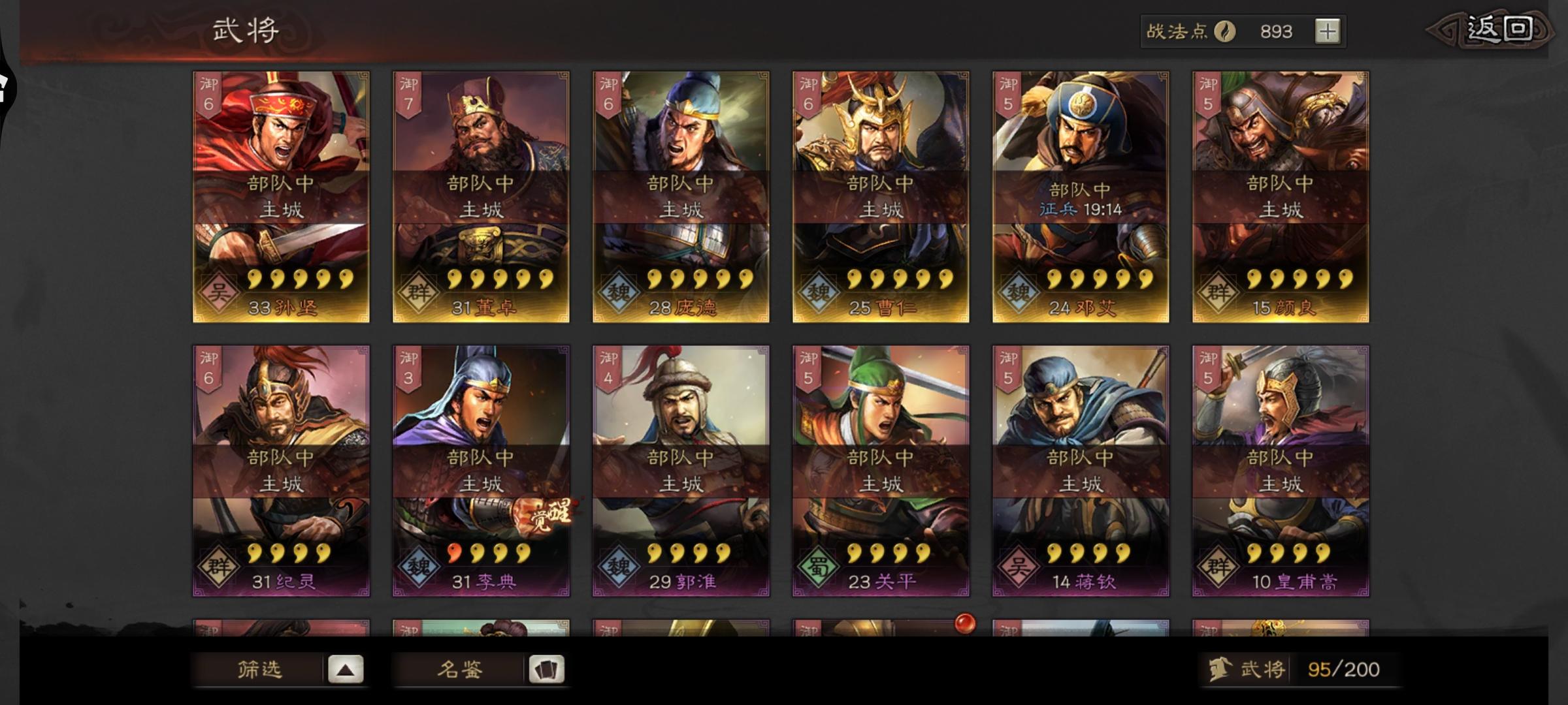 紫将和A级战法差不多都有,希望能搭配出来两队或者三队