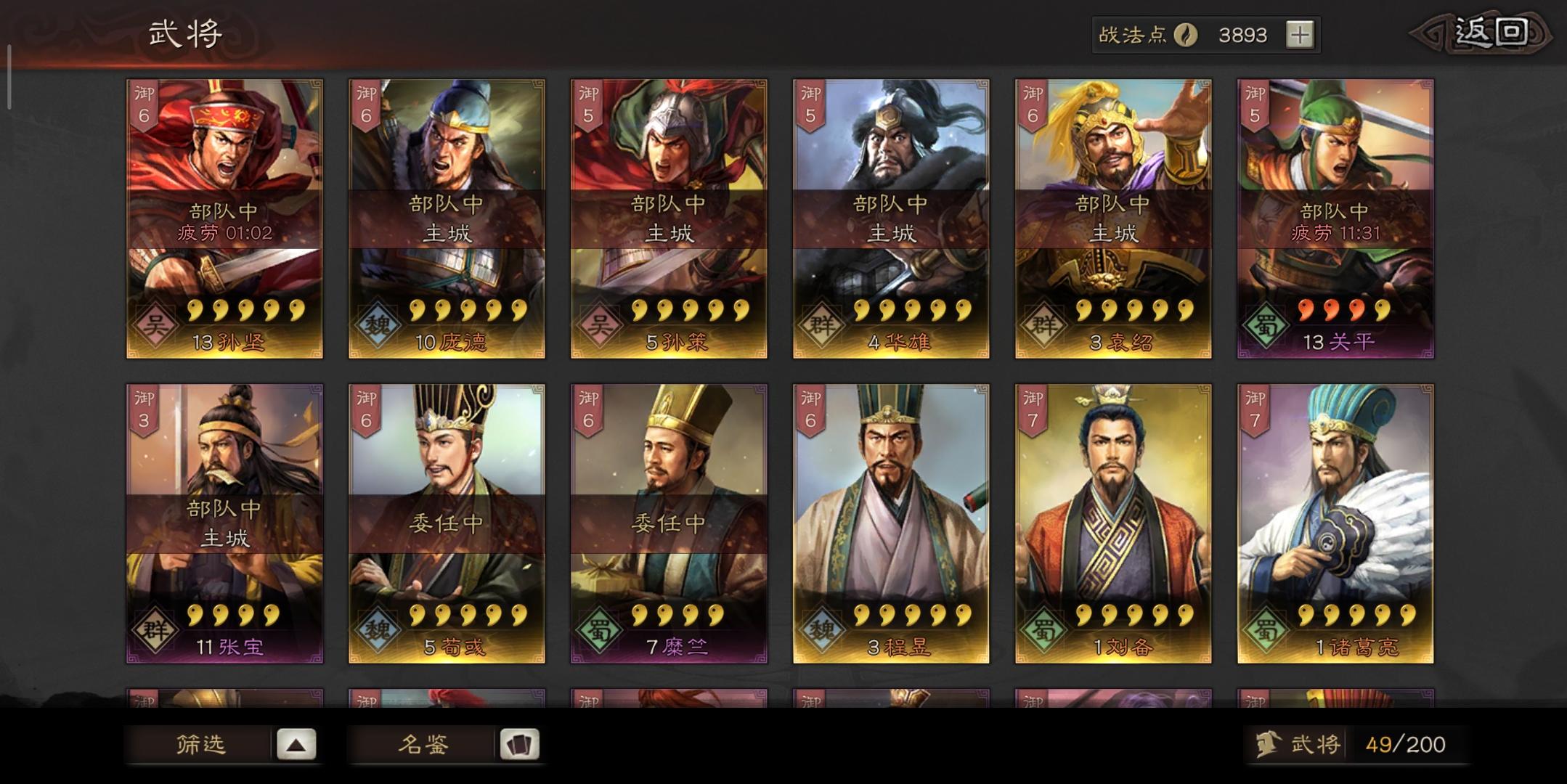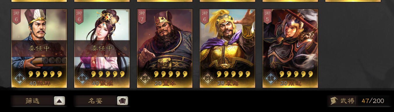 我敢说,就这些武将,也没人能凑个高级队了