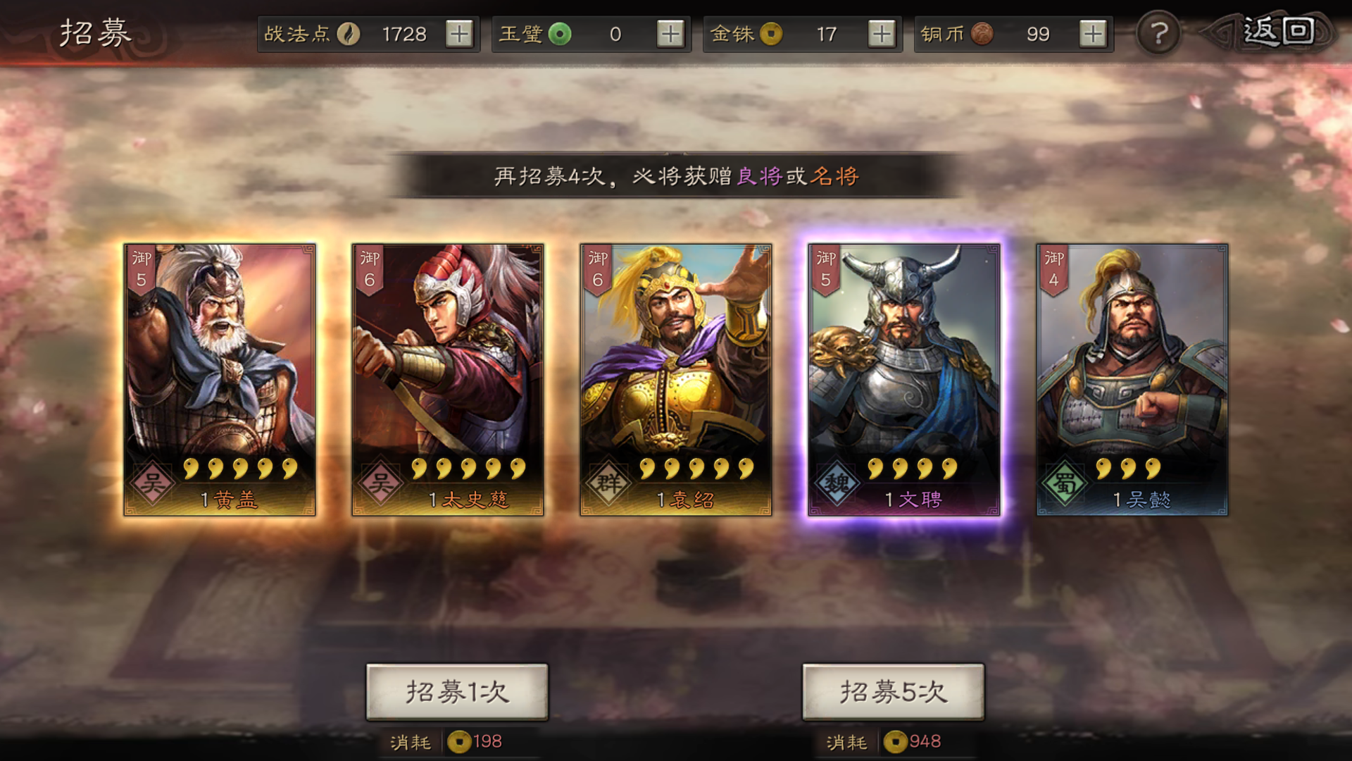 一把审配放进初始卡池里,不然到处都是买卖刘备开局号的,刘备的强无非在于他的治疗能力,治疗在前期开荒的作用太明显了。照目前看来能一定程度上代替刘备作用的也就审配的传承战法(45概率大约是刘备的一半,但好在加成系数高,通用性强)了。法正治疗概率太低本身左慈只有前4回合有效华佗同上而且还看概率二12小时一次的免费次数改成每日12点0点刷新,什么年代了,还用这个来捆绑玩家上线时间。这游戏逼玩家上线