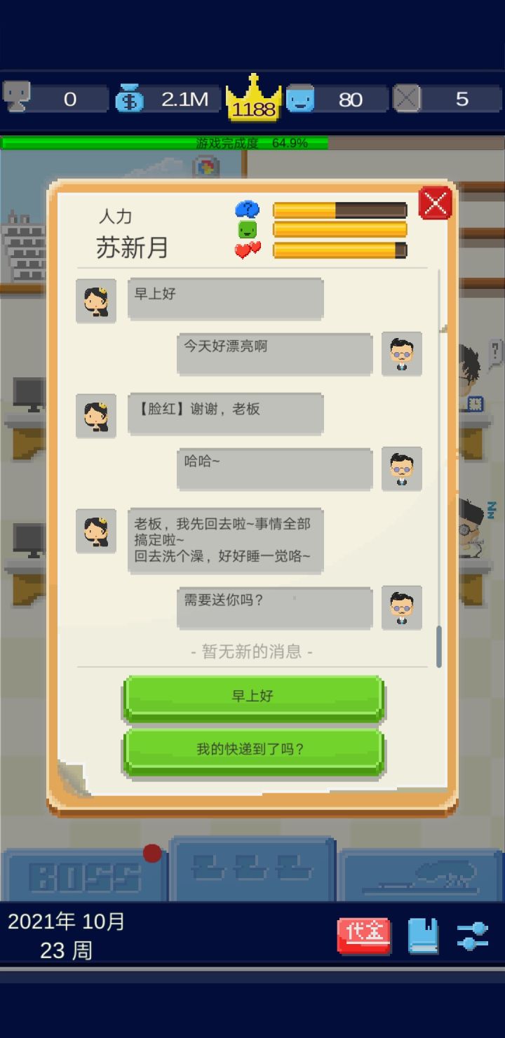 有个问题,不知道是不是bug,和员工聊天经常不理人怎么回事,就像这样很难受,特别难受,还有,这游戏最近有没有更新呀。