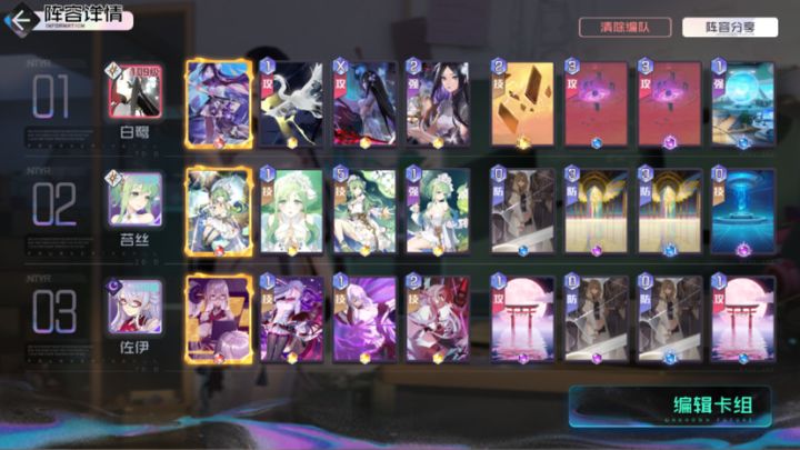 游戏了半个月了,对卡组有一定的理解,接下来将分享给大家。我们抽卡一次是六张,而卡牌又有湮灭卡,回合卡,强化卡,和非回合常用卡(攻,防,技湮灭卡(卡牌打出后不能再抽,回到湮灭卡池)回合卡(卡牌打出后一定回合内不能再用,暂移至湮灭卡池)非回合卡(打出后在弃卡堆)这游戏我们可以上阵三人,加上本身角色卡三张日常(除去大招),加上通用卡四张,7×3等于21张,而我们最高手牌是10张。一回合共五费楼