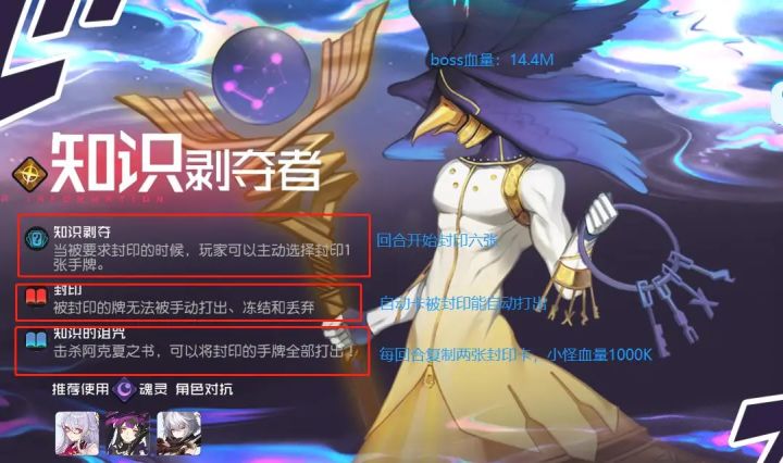 周五好,我是攻略君!今天的这份15-64特别的攻略来自:渠道28服ID:墨菲(十里阳光)协会:且听君言这份来自大佬满满的关爱,攻略君和诸位兄弟萌都收下了!不多哔哔,安排!BOSS[知识剥夺者]简介:知识剥夺:当被要求封印时,玩家可以主动选择封印1 张手牌。解析:回合开始封印一张,手牌上封印六张就召唤书怪。封印牌耗能为奇数或者偶数,书怪入场后奖励一点能量,奇偶并存则随机一张牌本回合耗