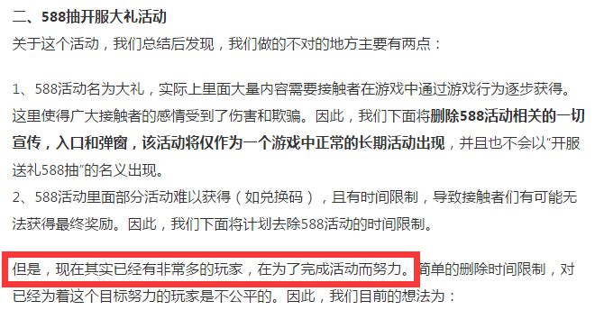今天上线的时候,小队集结活动的限时时间偷偷地改成了永久,没有任何公告,没有任何说明。588活动调整公告,你们也说了简单地删除时间限制,是不公平的,那么小队集结这个活动删除时间限制后的补偿呢?我白白提前氪出幻5了?早氪金的活该咯?希望官方能给出正面的答复,请给在原限时时间内完成目标的玩家一些额外的补偿。