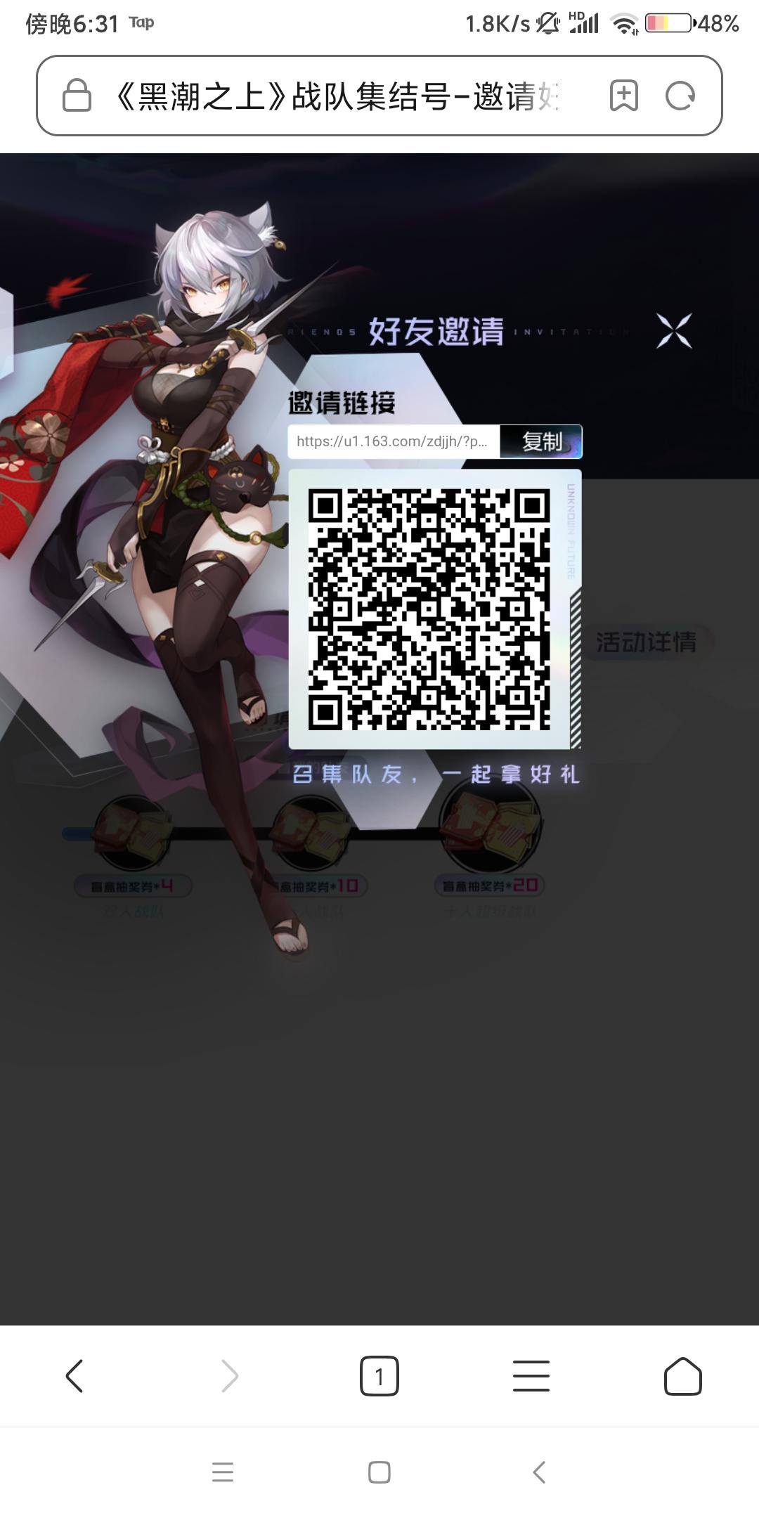 小队召集令活动,得自己复制到浏览器,不知道为什么不能直接点