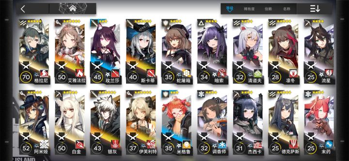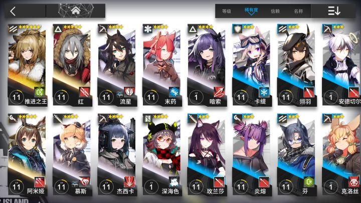 初期——新手エリート——资深干员上級エリート——高级资深干员先鋒タイプ——先锋干员狙撃タイプ——狙击干员前衛タイプ——近卫干员術師タイプ——术士干员重装タイプ——重装干员医療タイプ——医疗干员特殊タイプ——特种干员補助タイプ——辅助干员近距離——近战位遠距離——远程位火力——输出防御——防护支援——支援生存——生存治療——治疗牽制——控场減速——减速弱化——