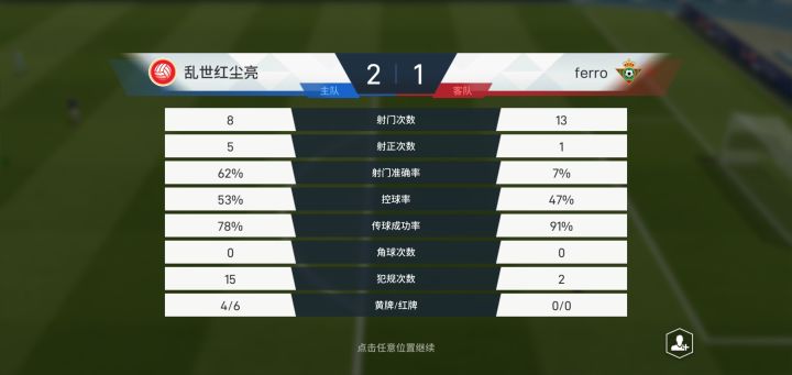 中场休息太草了吧,我还没缓回来就直接开始下半场了,连换人都不给我换一下🐴,希望以后更新能把中场休息的机制改一下