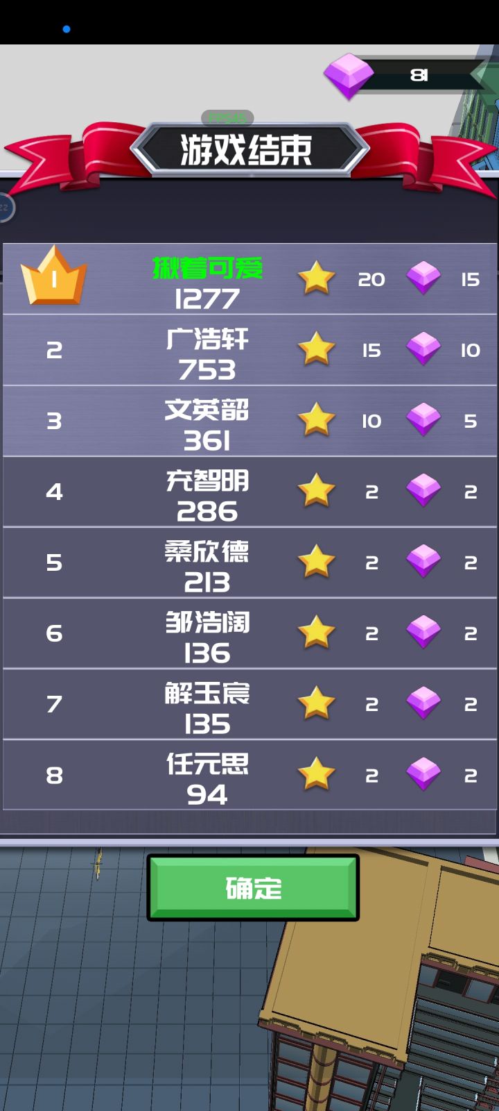 好几次第一,昨天连着玩到了三星😋