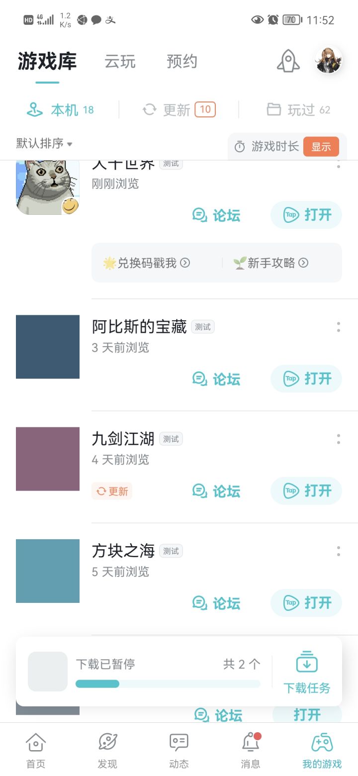 难受😒第四个游戏下载玩不了的了,每次进入游戏不到一分钟就闪退。本来还觉得TapTap可以的现在就想卸载了