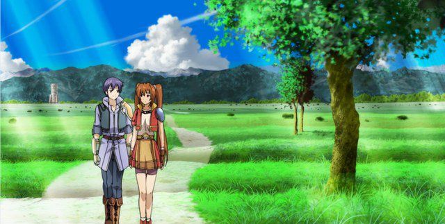 序章 - 父、旅立つ:故事开篇,女主角艾丝蒂尔(エステル)在家中等待父亲的归来,此时父亲却怀抱一名受伤的黑发男孩(土产?!)出现在家中,并告知艾丝蒂尔自己将要收养这名男孩。一转眼5年时间过去,艾丝蒂尔和当年的男孩约书亚(ヨシュア)都已长大成人。这天父亲要求2人前往附近的ロレント城进行准游击士的测试,顺便买一本当前热门的杂志利贝尔通信(リベール通信)最新号回来。两人来到北方城镇内的游击士协会(地