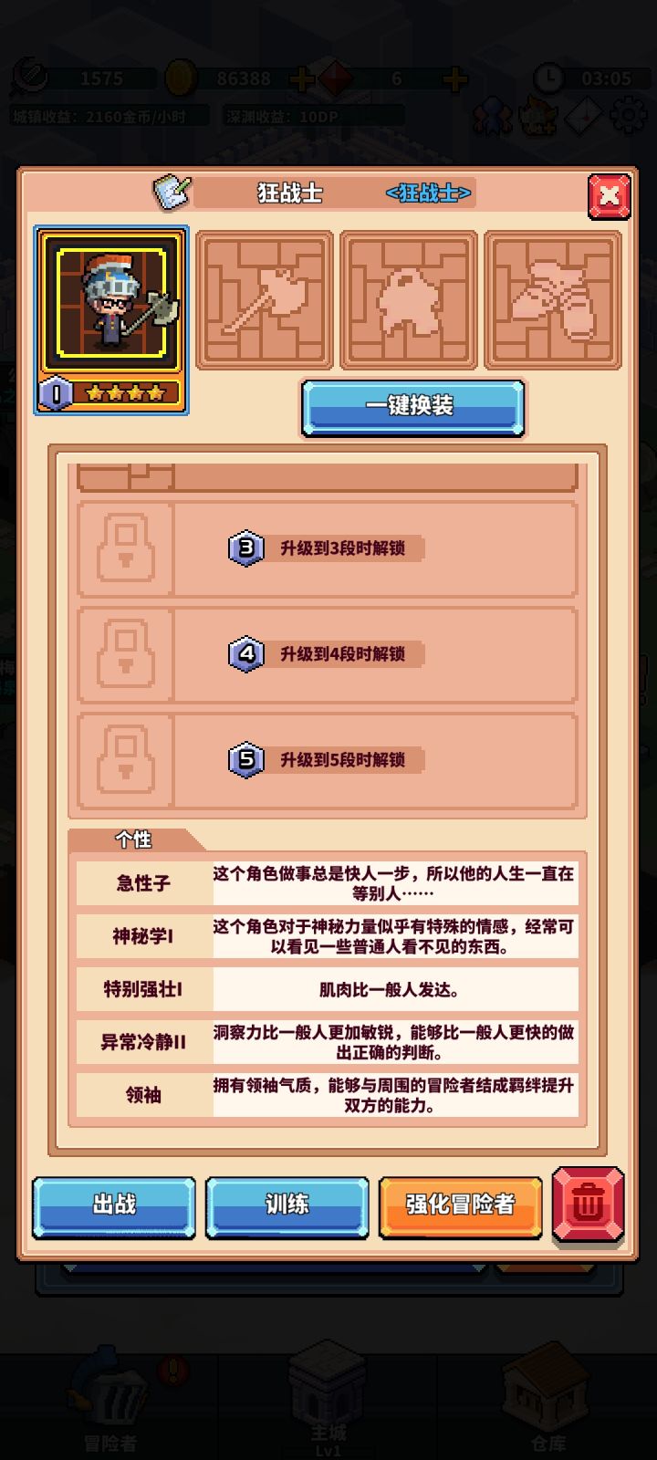 4个3星的不是可以合成4星的么 4星才出现性格 然后解散4星的会给那个升5星的材料一整套就是给你刷的主城那个石像在11.1或11.2主城右下角的众神量角器在12-3的宝箱里