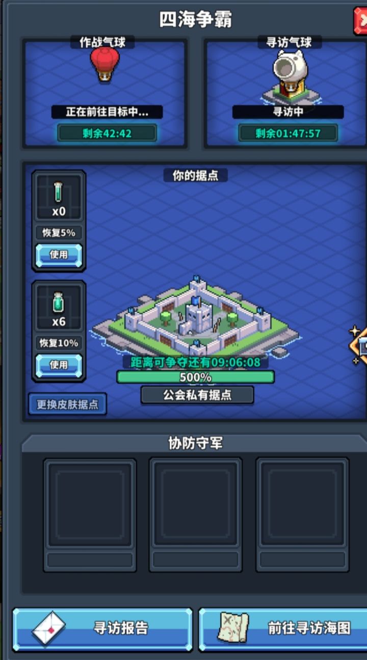 建议 1.限制公会占领的领地,如1级公会只能占10个无人岛,2级公会能占15个....这样能有效防止某一公会一家独大 2.提高海战间隔时间,这海战次数太频繁了,隔个2天就打海战,打一次2小时,要是不在线,估计家都被别的工会端了,建议一星期一次,这样占领的领地才会有点安全感,不会担心过两天又要进行攻防。
