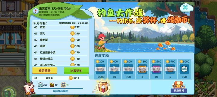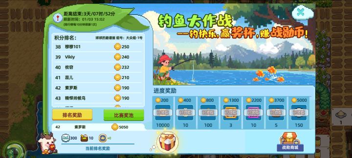 #奶牛镇的小时光 钓鱼这个排行榜????我连着钓了近一个小时鱼,所有buff拉满,奖励都领到5000积分了,这个排行榜只显示190积分还一直不刷新是什么情况!@奶牛镇的小时光