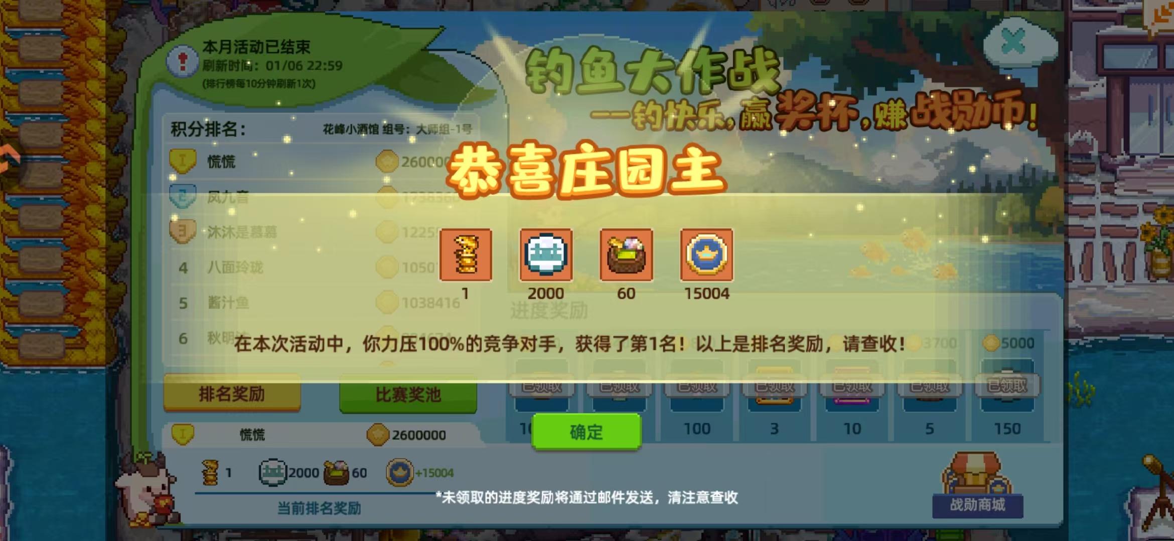 慌慌小姐姐前脚说游戏圈钱,还在说给这游戏冲钱的是冤大头,维护的是冤大头中的战斗头,然后后脚的钓鱼大赛怎么开了,这钓鱼大赛这个区第1名怎么是这个慌慌小姐姐呀,这260万分我猜一定是我慌慌小姐姐一分一分钓的,然后把所有的鱼全部换成了积分,肯定一分钱没有充,肯定不是冤大头,更不是冤大头中的战斗头,头中头