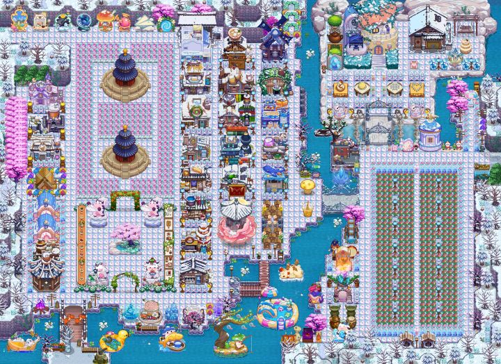 1.有空把鲸鱼岛婚礼场地那一块全改成放坐骑的2.把小院门口放坐骑的地方改成别的,具体改成啥还没想好。3.再把天空岛上被乌鸦叼走的🌸补齐包完美的抛费科特😎#奶牛镇的小时光装修