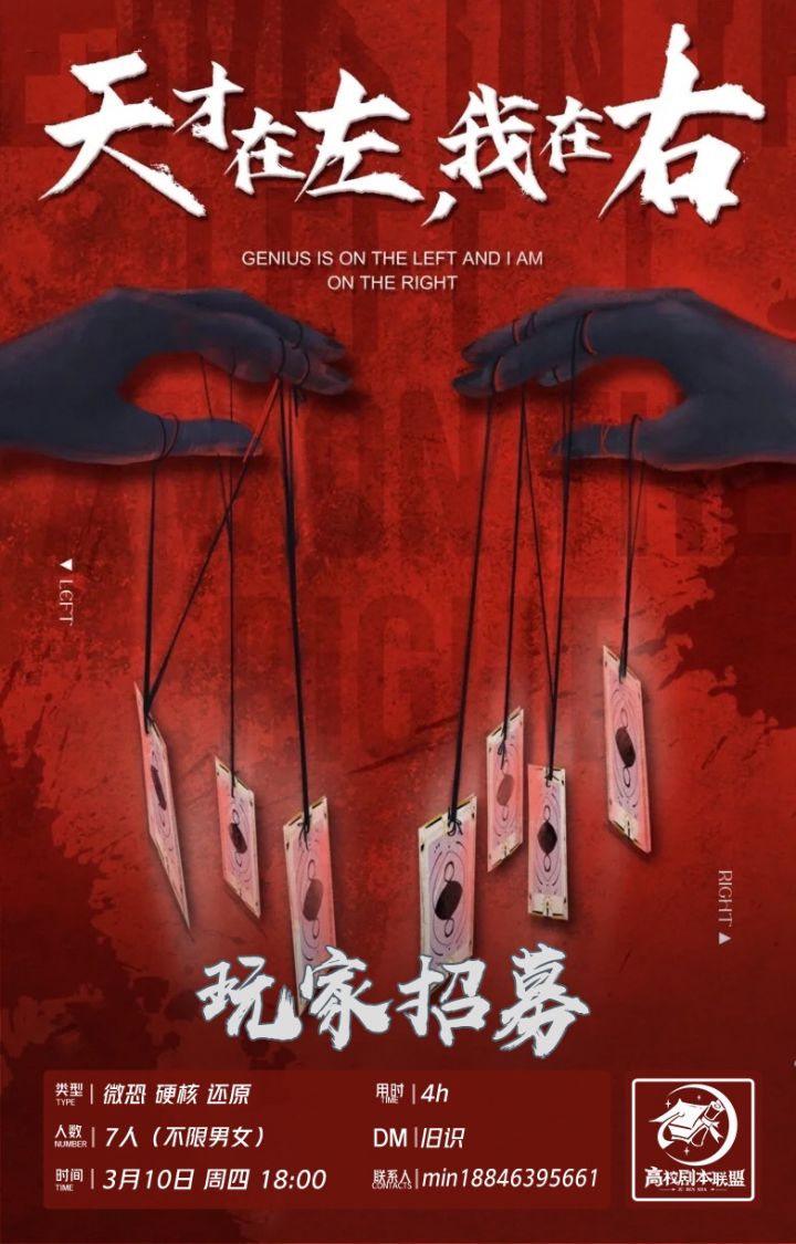 高校剧本联盟近期线上车,想来玩的添加微信详询哦~