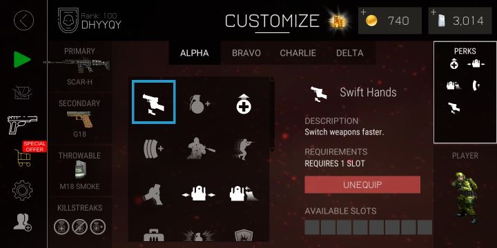 Part one 大战Woods技能:(适应新枪后把图中的swift hands换成了扳机手指)配件:无副武器:全程花瓶的G18或新刀子投掷物:花瓶烟雾弹战绩:(局末捡了把M16来玩玩)新枪适应用了一局(战绩惨淡,没截图),主要就是知道了这把喷子射速很高,射程比870远,还有腰射连870的十分之一都没有,进而意识到了装备扳机手指的重要性,装备后战绩好转,后来又差了起来,但kd还能保持在2到