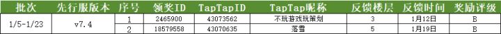 1/5-1/23批次获奖信息如下:活动时间2026年1月5日 Ver_7.4 版本更新后 至 下一次版本更新前活动内容为了维护乌拉拉世界的和平与健康,优化游戏体验,我们需要冒险者们帮助我们发现藏在游戏各个角落的害虫(BUG),同时也希望能够了解各位对游戏内容的各种想法建议!作为回报我们也备好了奖励~参与方式与奖励成功参与抓虫的冒险者,即收到官方版主给予认证回复的冒险者,将获得 【先行服