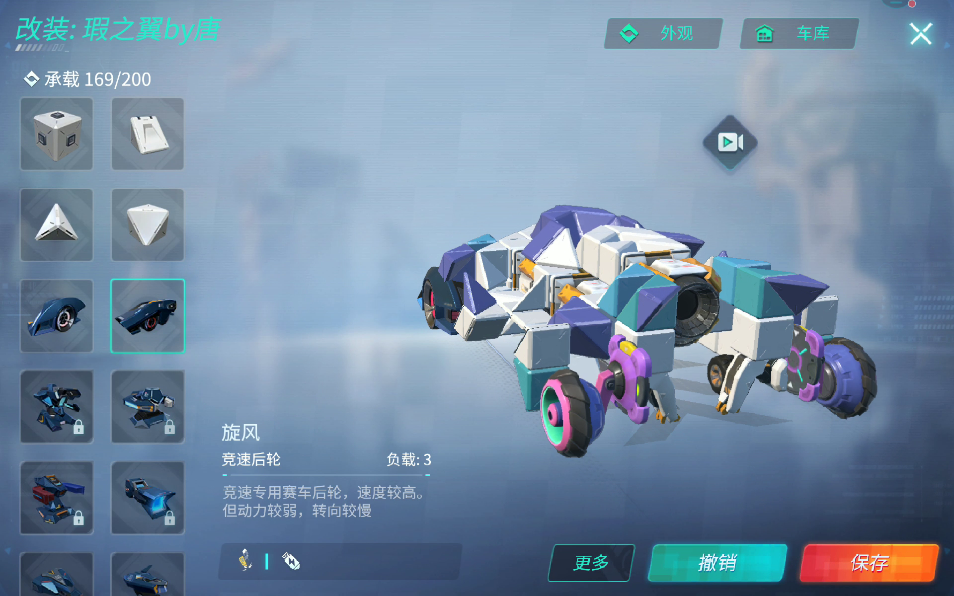 车是瞎造的,不过有种蜘蛛的感觉,别说造型还蛮成功....,但是从开游到现在新模块都一直很违和,而造得车多了,就那么几个喜欢的配色,换来换去...