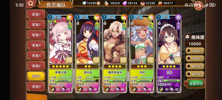 包括了品质,觉醒练度,打完最后一关战损情况以及装盘情况然后五星有些是米饭喂到这个练度,有些是抽或者活动送的一队甜品是最稳定的,实际上大福换成甜甜圈和面包诱惑一起单秒后排更加合理,一个半吊子群伤一个高单伤很容易伤害溢出,而且面包诱惑如果不点味道索敌,自动索敌机制是血量最少那个,所以开自动会丢很多伤害但是大福有活动送好多,所以先升着了,有条件得觉醒,三觉大福群伤稳定很多(甜点觉醒素材建议刷四