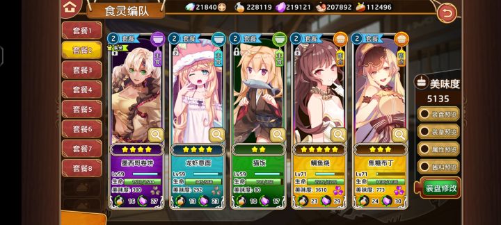 rt前两队是根据tap攻略区佬的推荐配出来的(图片里是我现有的五星。)3觉的鲷鱼烧是转盘两次都抽到2觉之后拿狗粮升上去直接用了,应该算。。。甜点c?图刚推到次元小屋,还想往后推,所以想先把这几队都配好了好好养一下。(猫饭完全煮不出来啊,后面会掉吗。。。。)虽然说很多食灵都可以煮出来,但很多别人的配方做出来的都不是需要的食灵,而且我记得我之前开过号的,不知道为什么被删了,懒得找回来,这是我直接