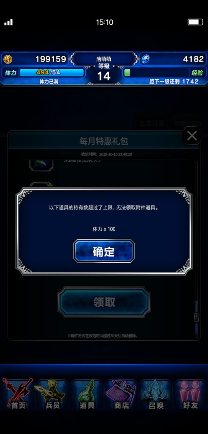 邮件里面有体力不能领取?