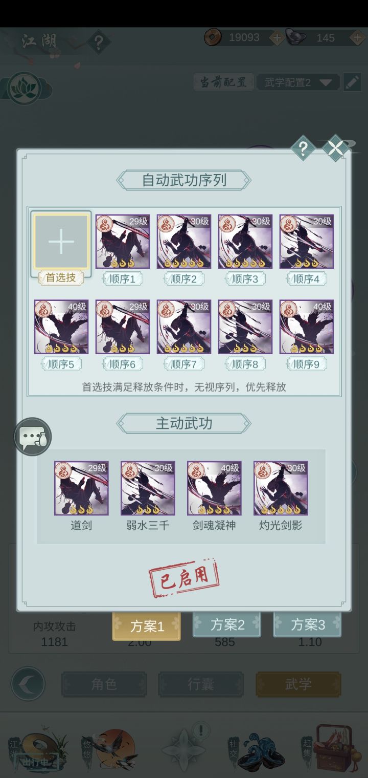 问酒武学技能连招搭配