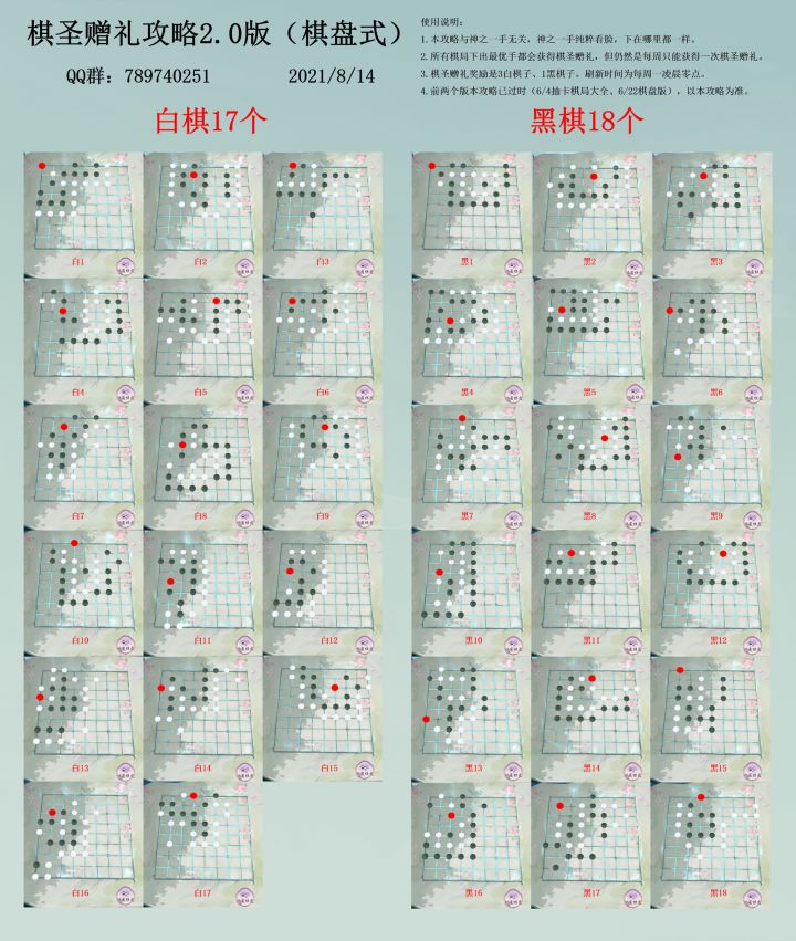 (2021/8/14 20:30更新)昨天的更新基本让以前所有的棋局都过时了,这两天也抽空更新整合了下,以前的攻略就不用在看了,直接看图即可。下面的攻略全部过时,不用看了,只看上边的图即可。------------------------------------------------------------------------------------------------------
