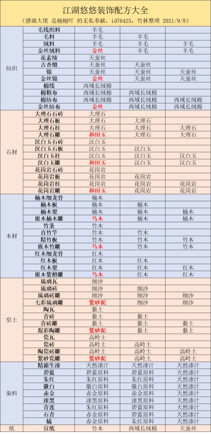 【竹林】江湖悠悠装饰配方大全(感谢大佬 是栩栩吖 的无私奉献)