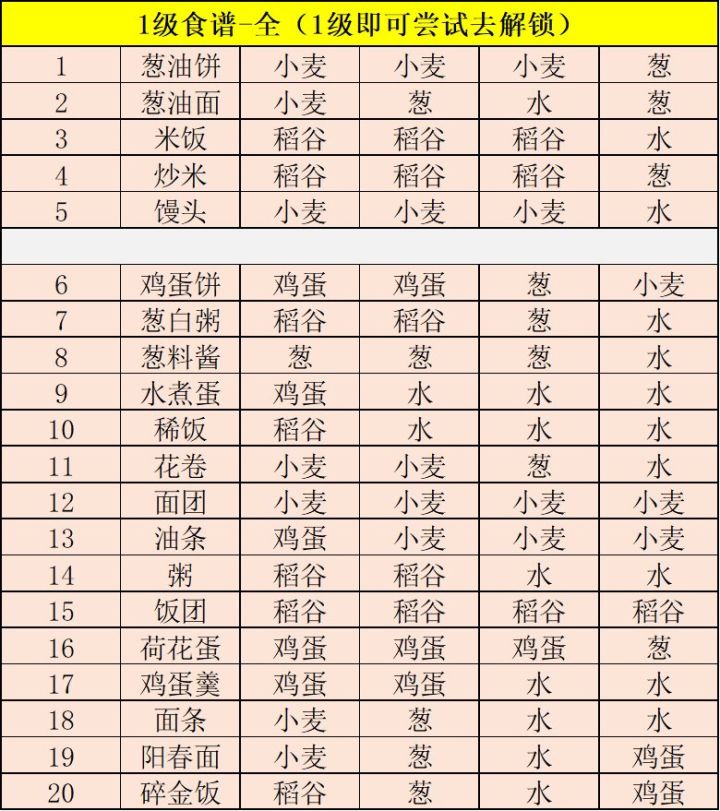 各级食谱+酒方+药方+好感度+礼包码