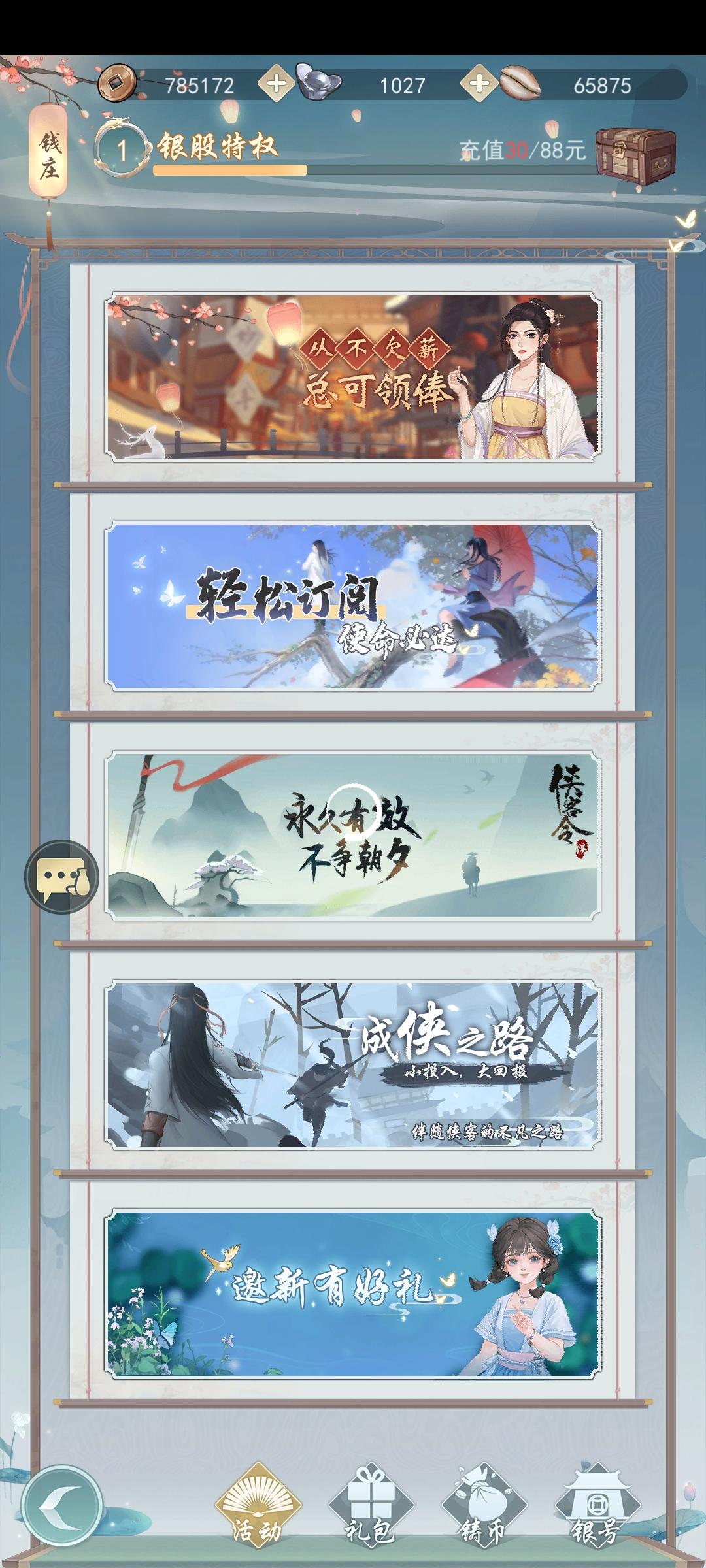 私银能买些什么东西。能不能精确点?比如侠客令,月卡,成侠之路这些,还有装饰,服装等等