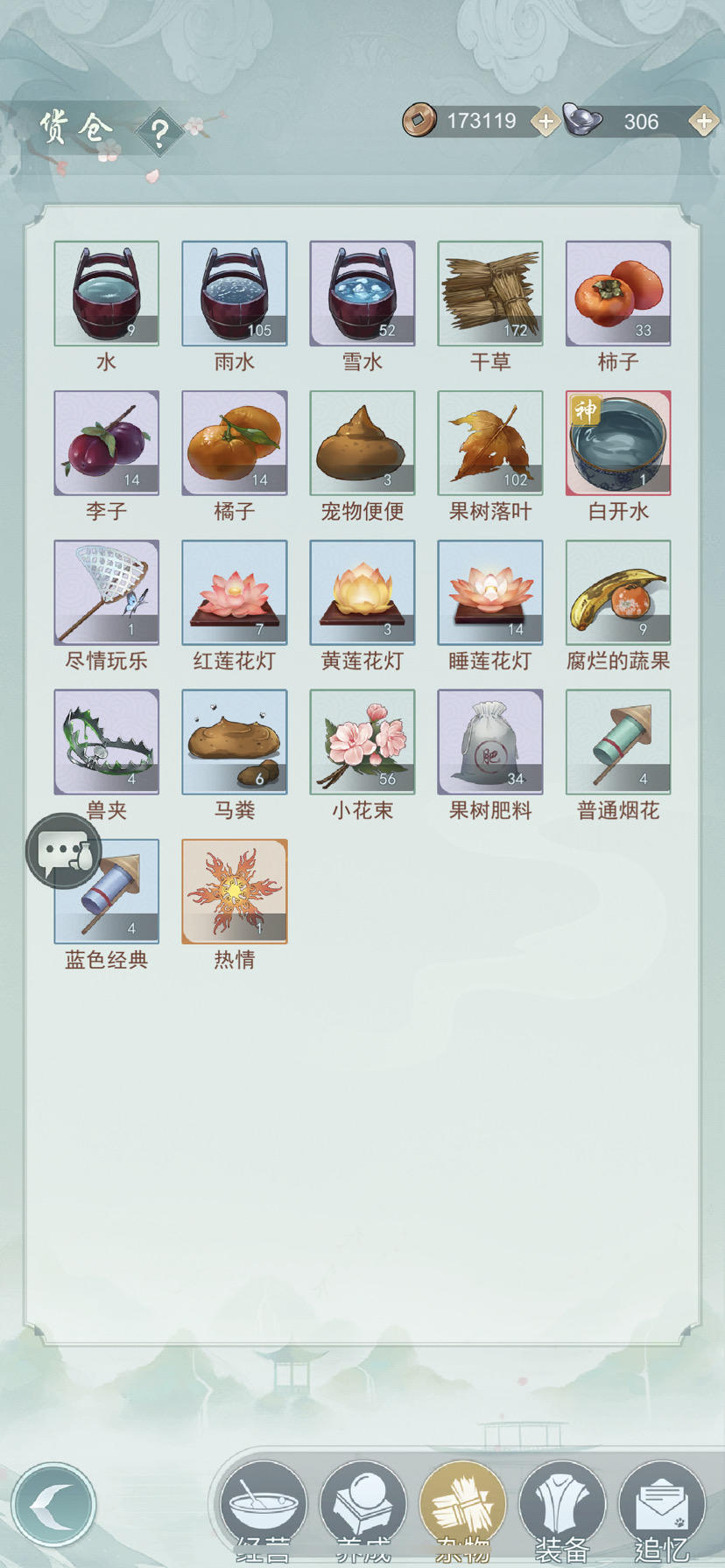 一,花种子(花园都满了,要这有何用?)二,出行道具(都有永久道具了,要这干嘛?)三,好感度道具(出行就给很多,一次只能送一个,剩很多)四,陷阱(我开服玩到现在,没人偷过)五,不用的装备(真够傻)