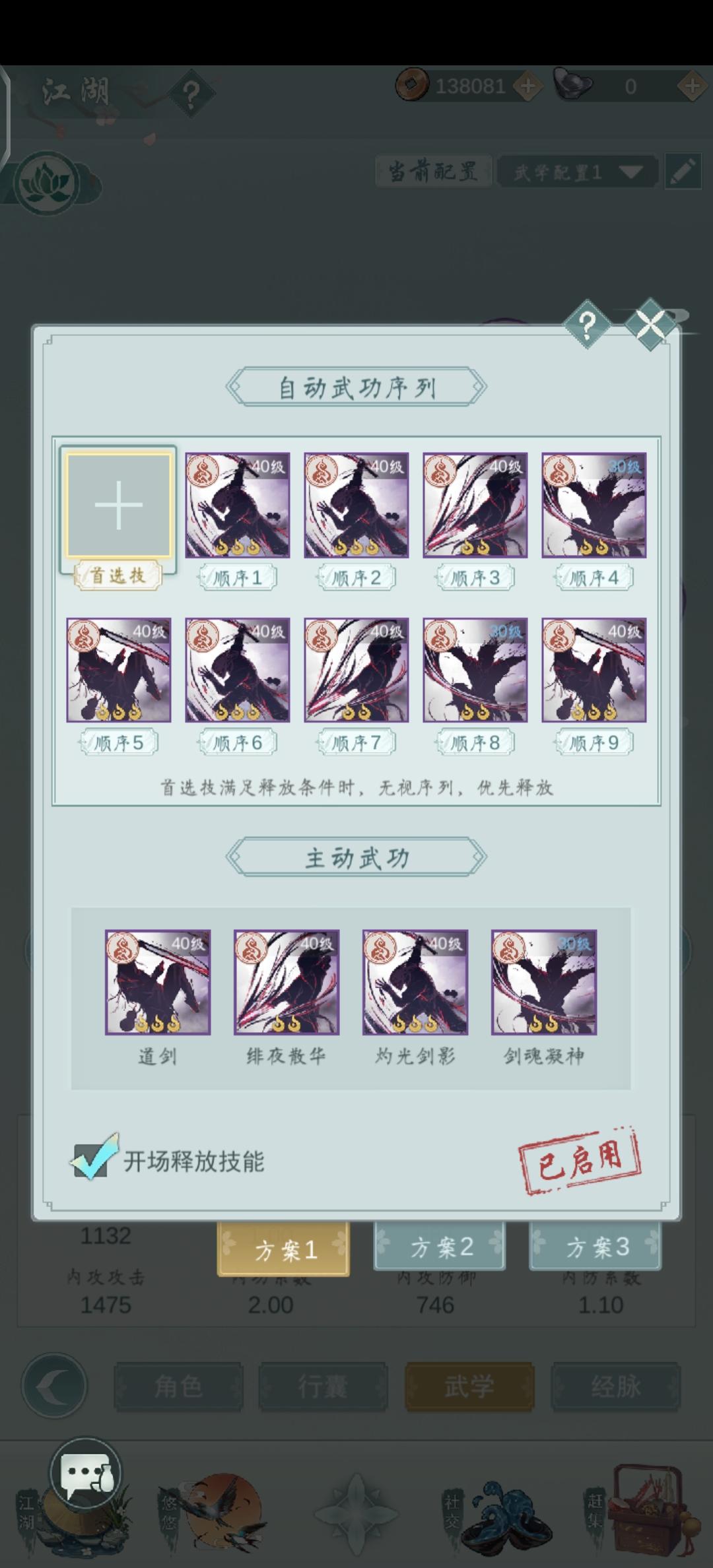 开了个小号,玩新惊涛,目前就差悬河了。葵水,御剑飞星,件履山河,双龙戏珠,自动怎么设置,先谢谢惊涛门主我目前是下面这样的设置,👇🏻