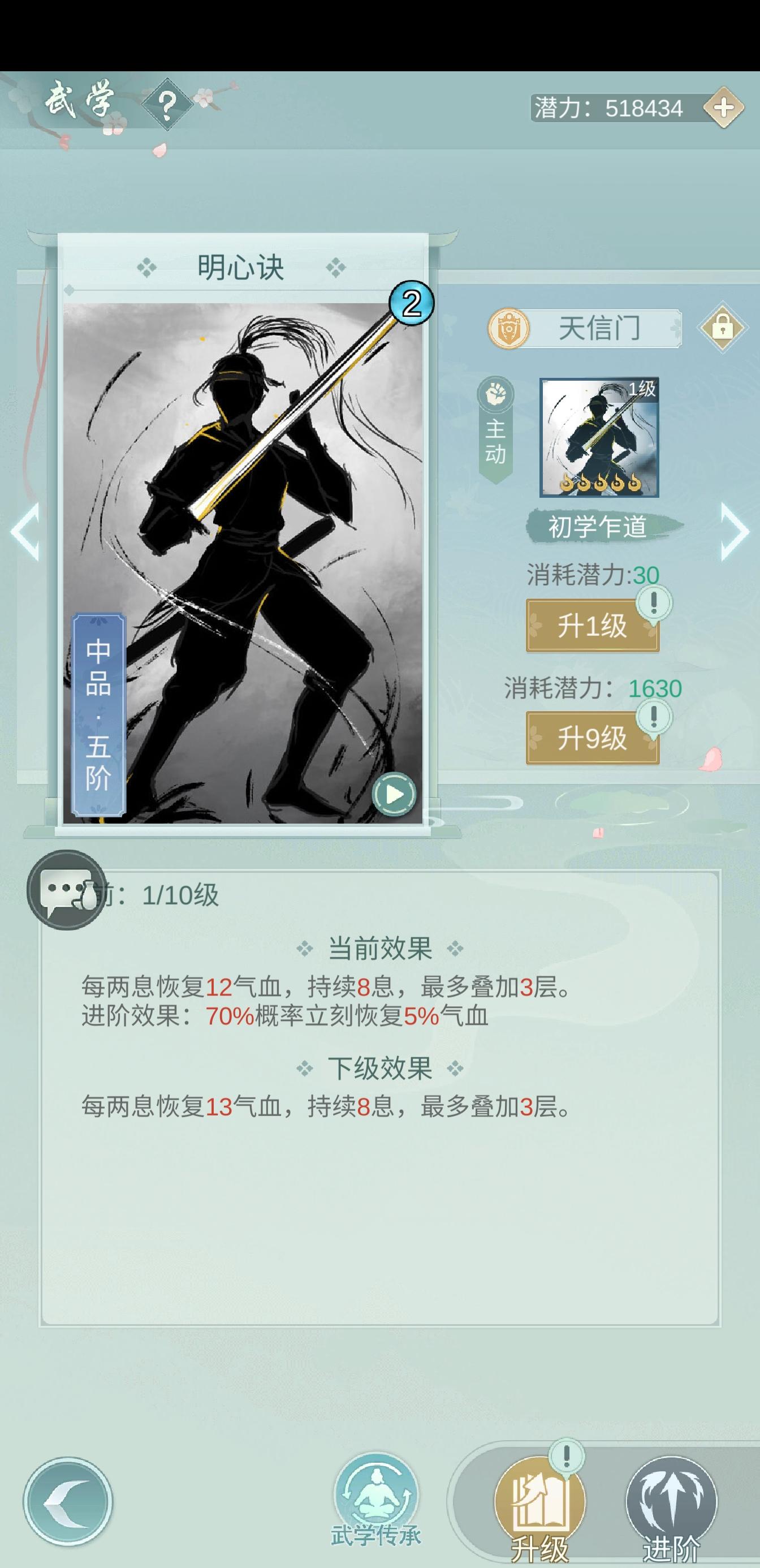 五阶升6阶同门派同等阶的蓝色武学为啥用不了