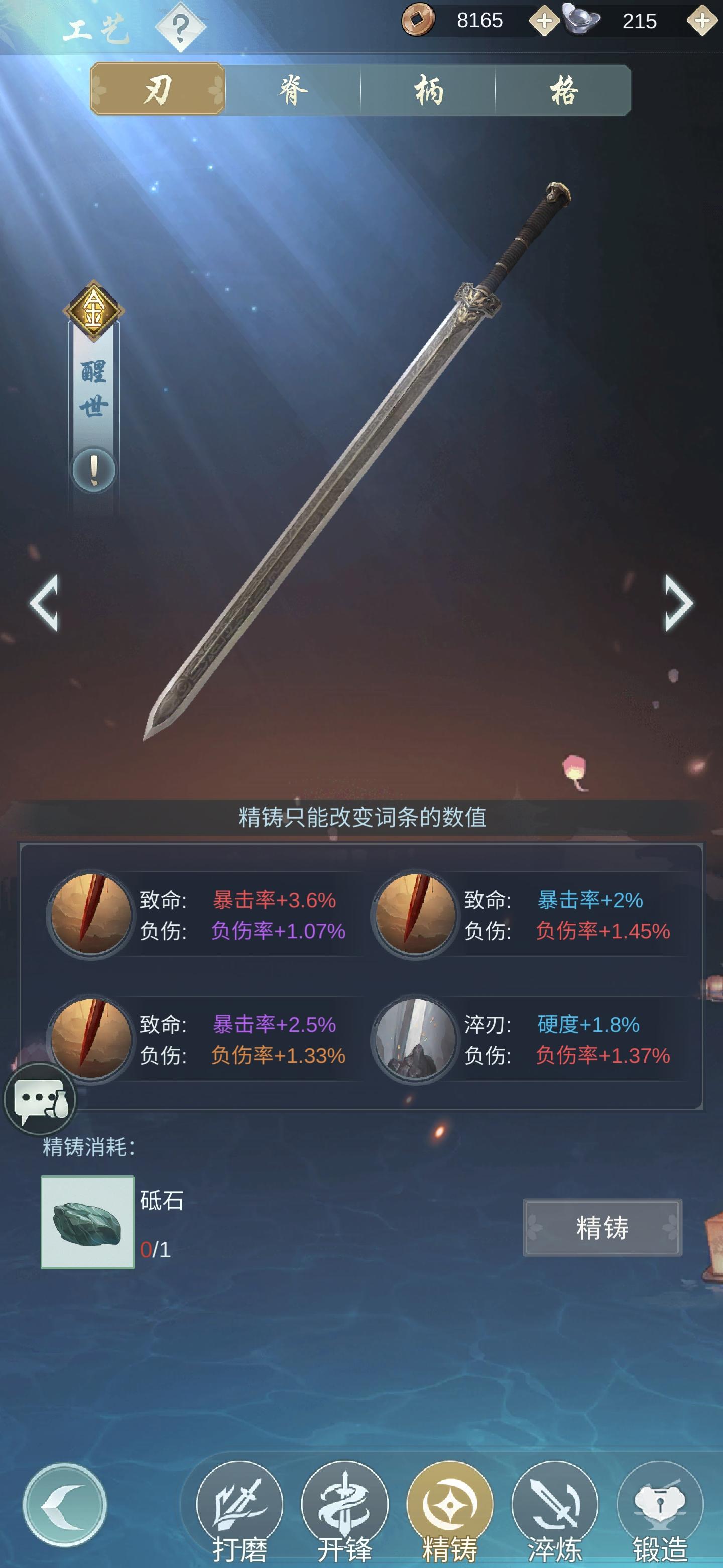 很多人想看天信醒世怎么洗,这里是答案,不懂的问我。刃暴击和负伤或硬度和负伤,主洗负伤先红。脊 重量和反刃主洗反刃先红。炳 反刃和韧度,主反刃先红。格 斩魂和负伤 主负伤先红。