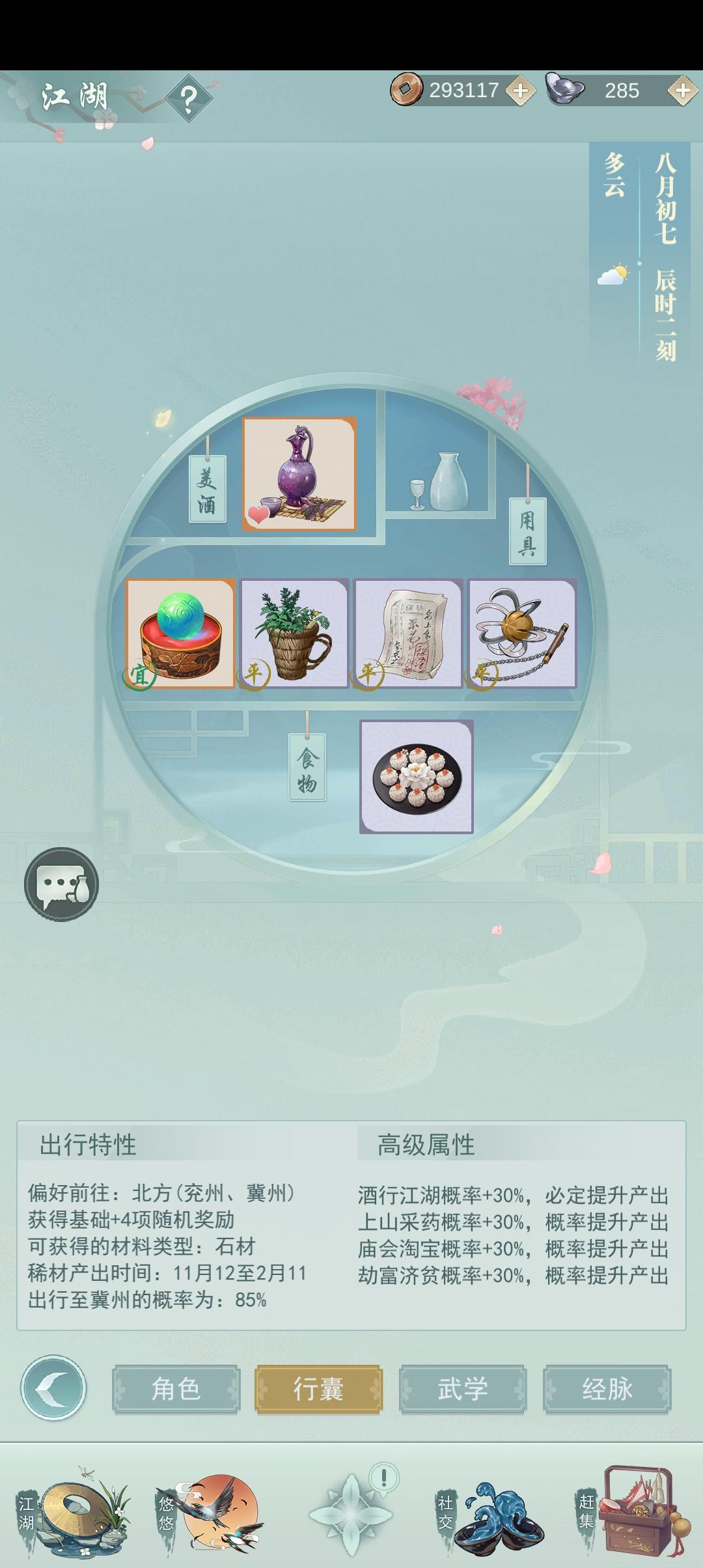 不懂就问:我两个号,为什么行囊里面带同样的食物和酒,显示出行到地方的概率不一样呢?一个号是85%,另一个是100%?这到底是怎么回事。。。😇😇😇