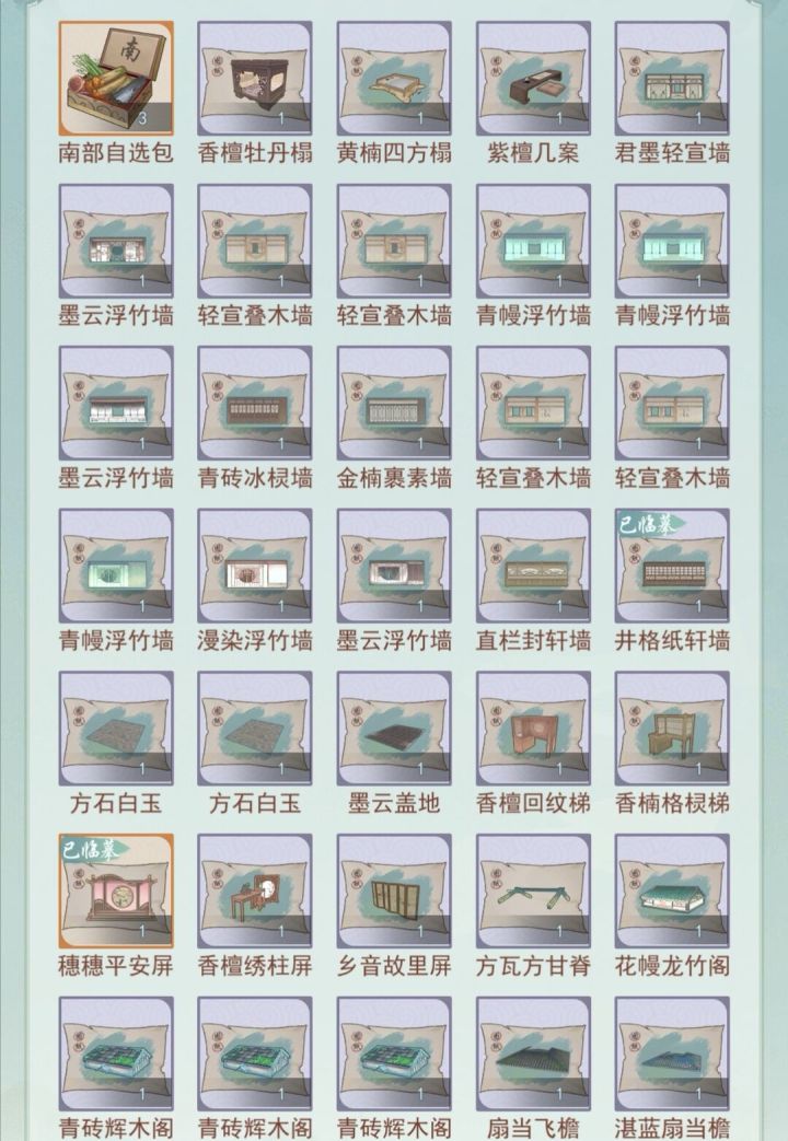 摆摊摆摊,上货啦!!!需求:锦绣潇竹梯,花漫知之梯,青幔浮竹墙(北墙)