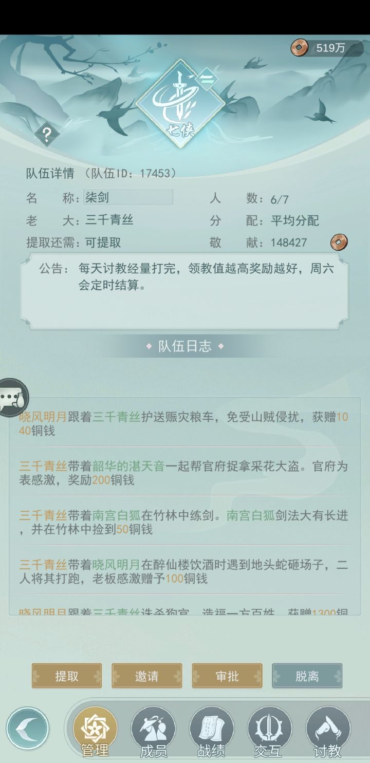 七侠招人,因为小伙伴退游所以要招一个人啦,能够稳定7400,所以来打打小的就好啦,如果能够刷刷门主就更好啦!另外我们村也招人,9341云深不知处,欢迎加好友哇!