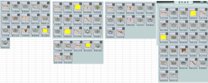 目前第二次已换到的已经标黄处理(我送出去的几个还没备注,青竹桌子,嘤嘤毯子,紫色瓶子,还有个啥换出去了。我记不清了,明天重新整理图纸),感谢~~~(2022年2月17日 17点54分)