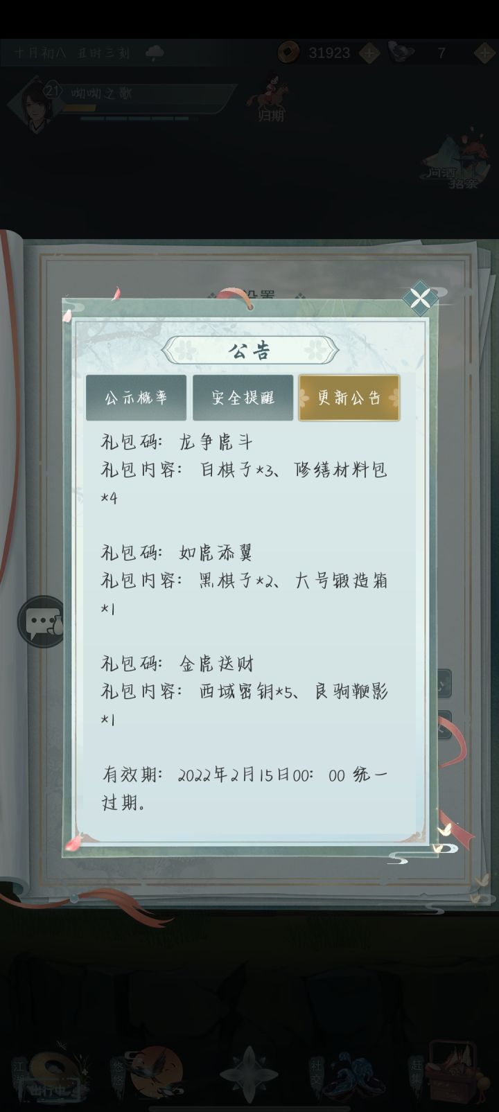 公告里面有几个礼包码,今天才看到😂