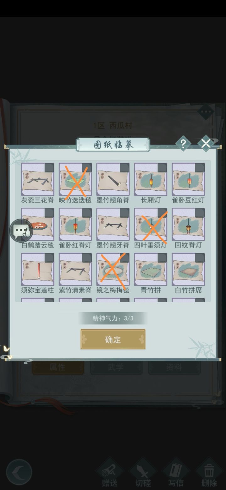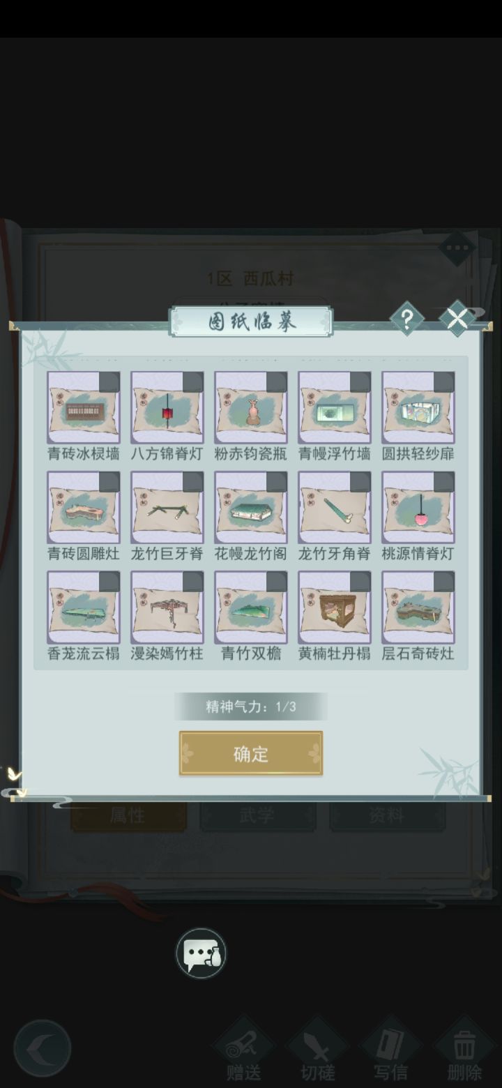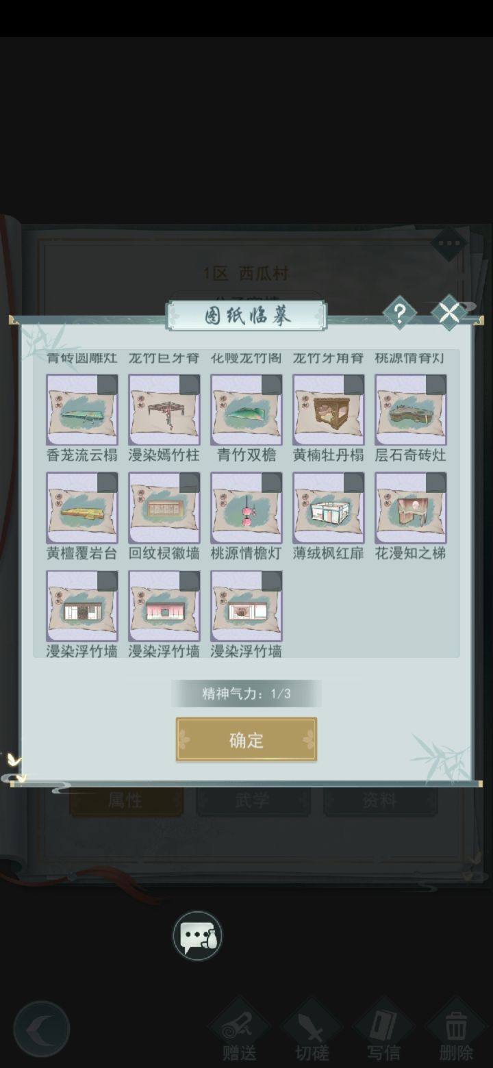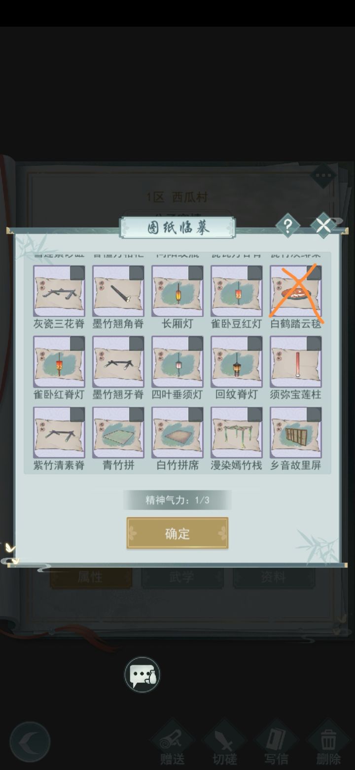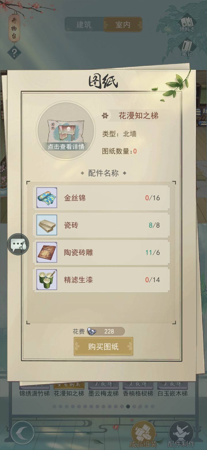 求换(2021/12/21更新):1.赤柱卷月案(id1326442)2.花幔繁星 (id1453032) 樱樱毯 花幔龙竹阁 青砖圆雕灶 桃源灯自己的库存:我有的是目前5个图中的图纸,都可换有的滴滴我想要其他的也可以找我交换哦联系方式:求换1的id是1326442,2的id是1453032如果TapTap、游戏没回,请加QQ740483938