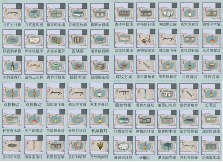 换墨蓝洒青柱,映霞檐灯,飞瓷三花脊,灰瓷飞角脊,云纹八方毯,八仙对饮桌,官窑白瓷瓶,卷草八方瓶,金楠流云柜,香檀福纹柜。都可多换一。